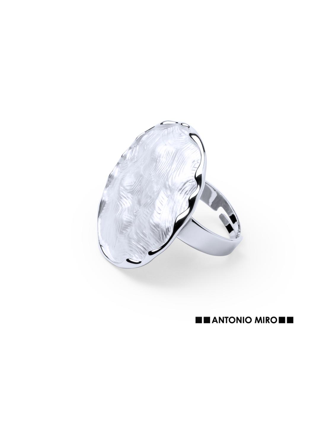 Anillo ajustable de Antonio Miró en metal con incrustación de resina. Presentado en funda de polipiel con logotipo de la marca.