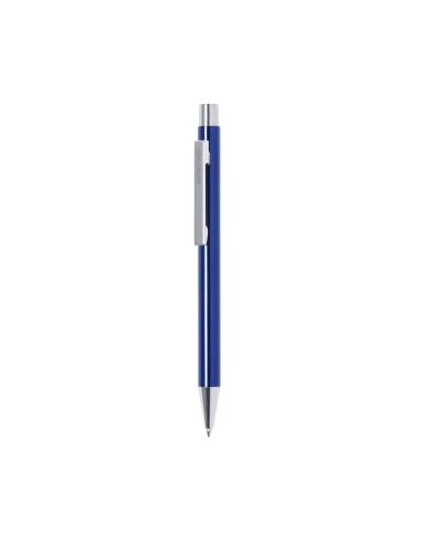 Bolígrafo de Antonio Miró con cuerpo en aluminio de variada gama de vivos colores y en color plateado. De mecanismo pulsador y presentado en bolsita don logotipo de la marca. Tinta azul.