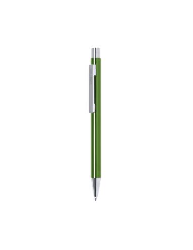 Bolígrafo de Antonio Miró con cuerpo en aluminio de variada gama de vivos colores y en color plateado. De mecanismo pulsador y presentado en bolsita don logotipo de la marca. Tinta azul.