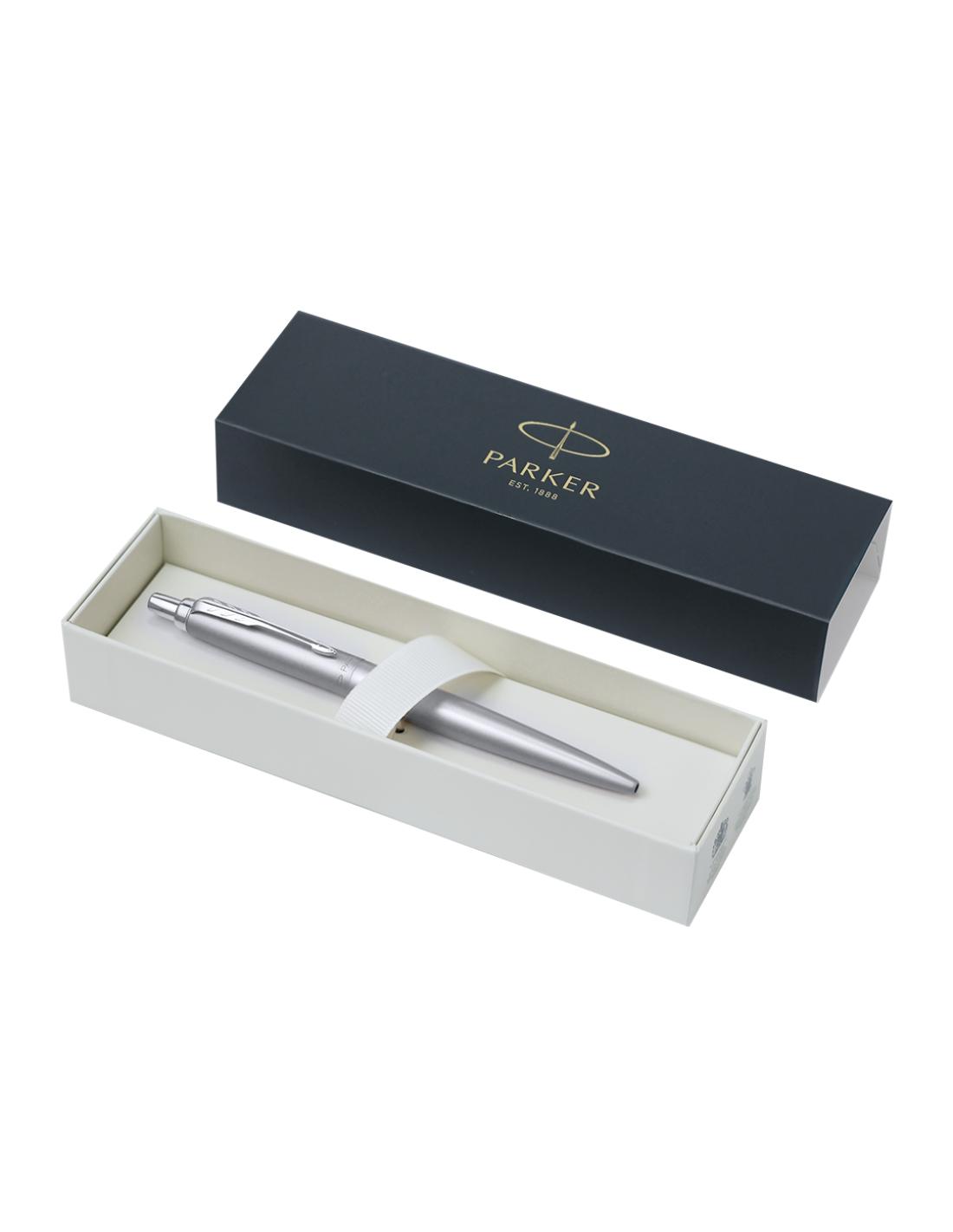 Bolígrafo Parker Jotter XL Monochrome, un clásico entre los bolígrafos con tinta de gel. Fabricado en acero inox, con adornos y el clip con la forma icónica en punta de flecha de la marca. Con mecanismo pulsador, clásico cartucho interior Parker y en tinta azul. Presentación en estuche individual negro con logotipo Parker.Con la fluidez, precisión e intensidad homogéneas propias de PARKER Jotter, un referente en cuanto a estilo desde hace más de 60 años. Con un diseño novedoso y simplificado y con una tinta de gel intensa y homogénea que traza con fluidez líneas que se secan con rapidez para evitar borrones, reflejando su legado en cada detalle.
