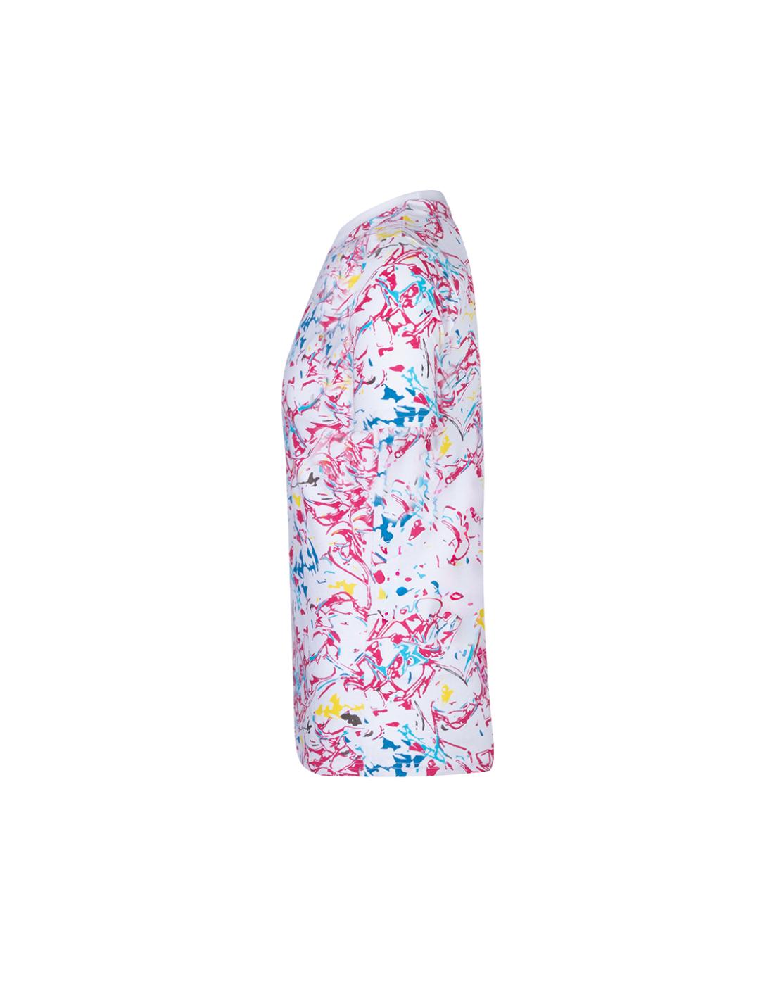 Camiseta unisex con estampado en colores vivos. Confeccionada en 100% algodón peinado Ring Spun de 150g/m2. Tacto suave y corte moderno. Cuello redondo estrecho en canalé 2x2. Doble costura en dobladillo y mangas para una mayor durabilidad y resistencia al uso intensivo. Etiqueta fácilmente removible. Disponible en tallas XS, S, M, L, XL y XXL.