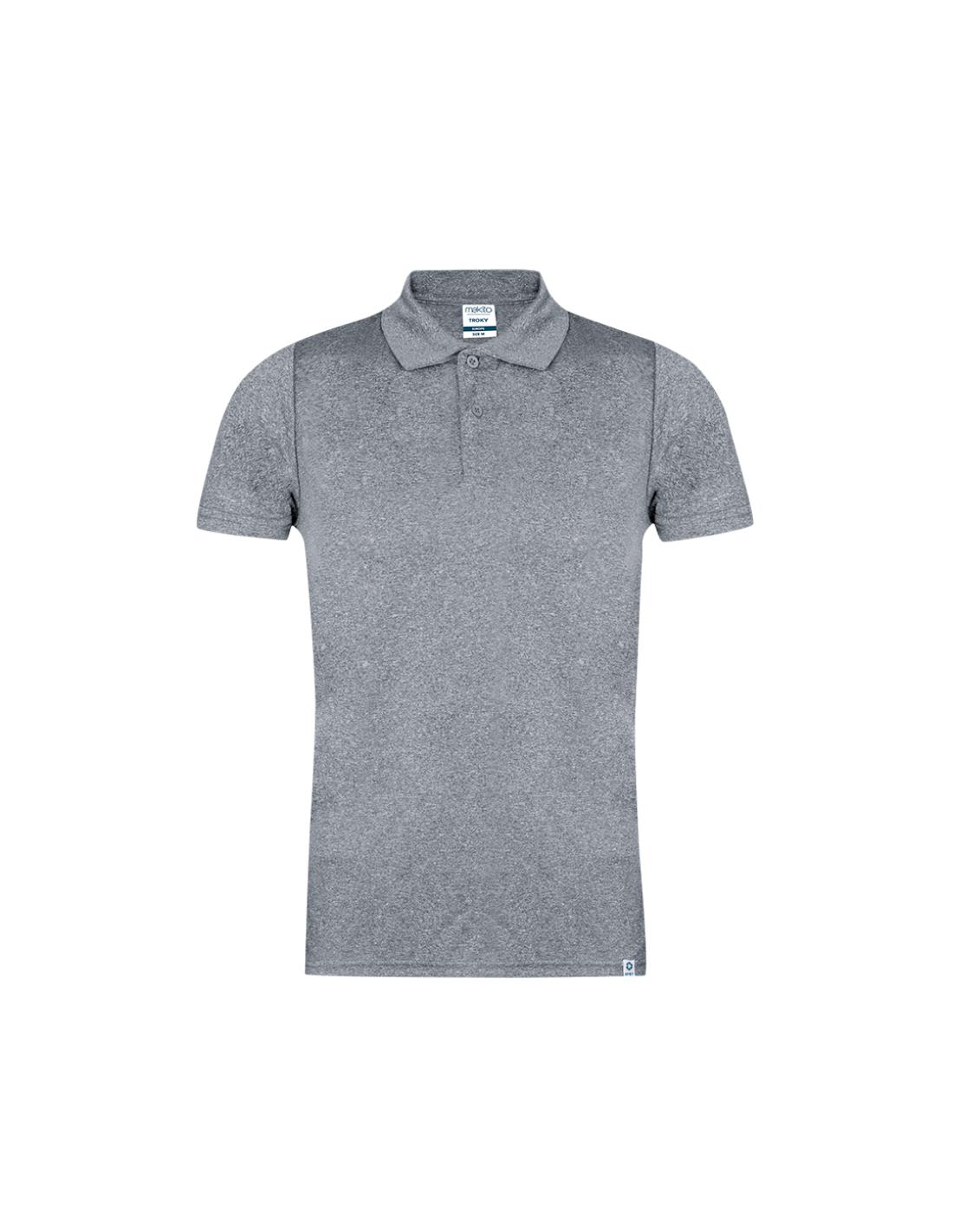 Polo técnico manga corta unisex. Confeccionado en tejido de poliéster 100% reciclado y color con efecto melange. Su gramaje de 150g/m2 hacen que sea una prenda ligera ideal para la práctica de deporte y el día a dia. Tacto muy suave y corte moderno. Tapeta de dos botones al tono. Tejido transpirable de fácil lavado y rápido secado. Doble costura en dobladillo y mangas para una mayor durabilidad y resistencia al uso intensivo. Etiqueta fácilmente removible. Con etiqueta exterior RPET, indicativa de producto de origen reciclado. Disponible en tallas XS, S, M, L, XL y XXL.