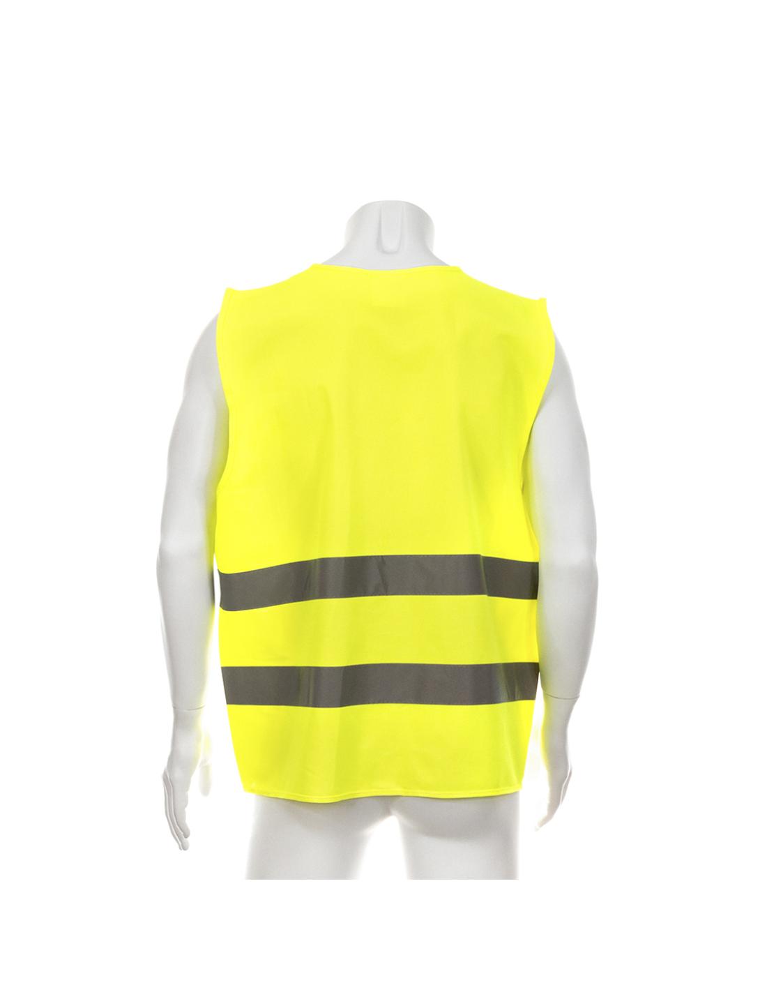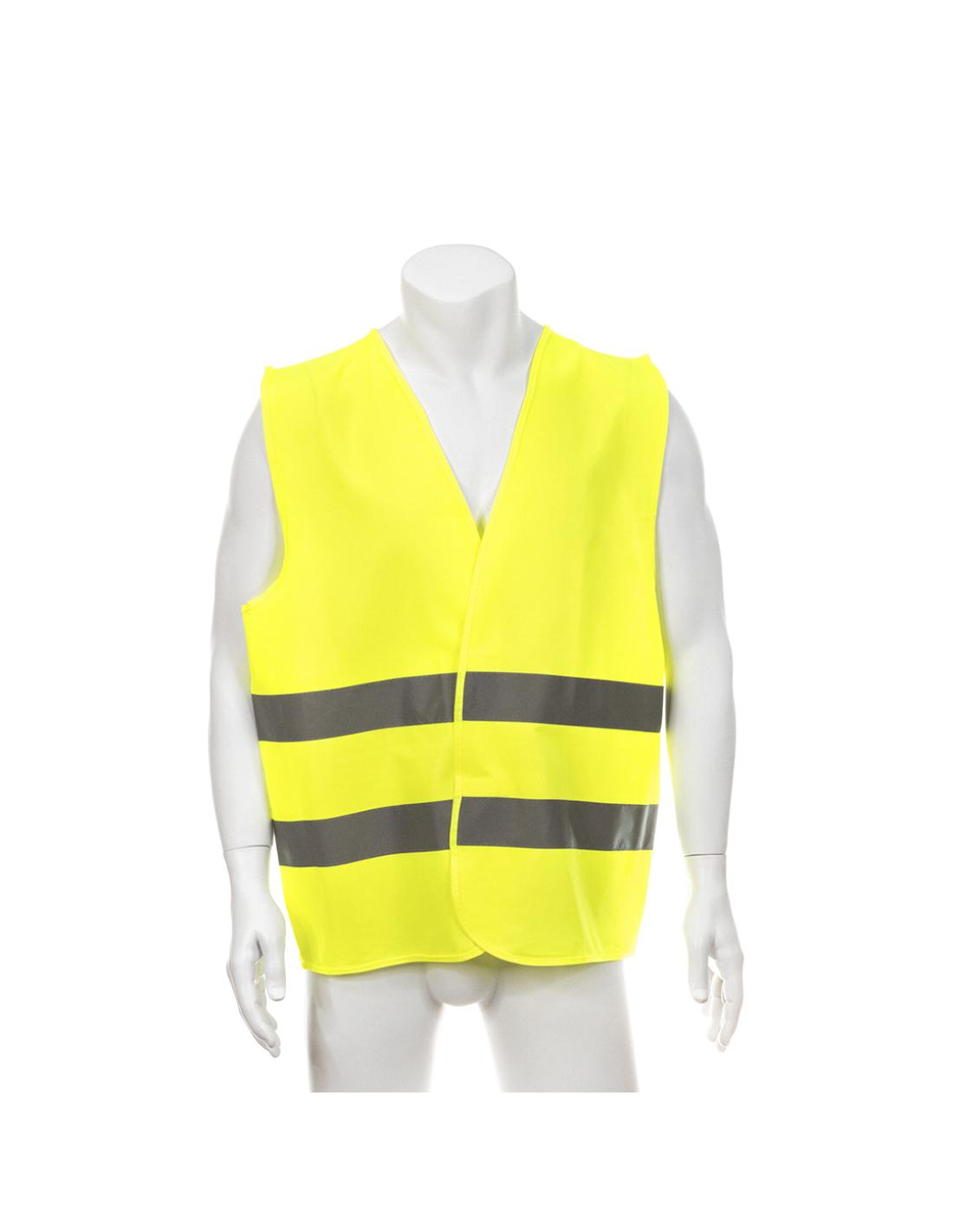 Chaleco reflectante de alta visibilidad, homologado según normativas de seguridad CE. Con doble tira reflectante alrededor del cuerpo y cierres de velcro. Talla única para adulto.