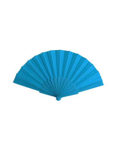 Abanico con varillas fabricadas en resistente plástico y tela en poliéster. Varillas y tela a juego, disponible en variada gama de colores. Presentado en caja individual blanca con ventana.