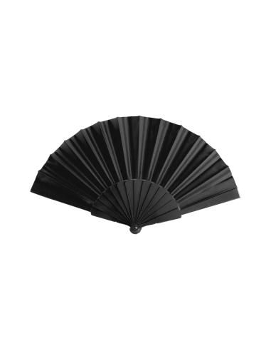Abanico con varillas fabricadas en resistente plástico y tela en poliéster. Varillas y tela a juego, disponible en variada gama de colores. Presentado en caja individual blanca con ventana.