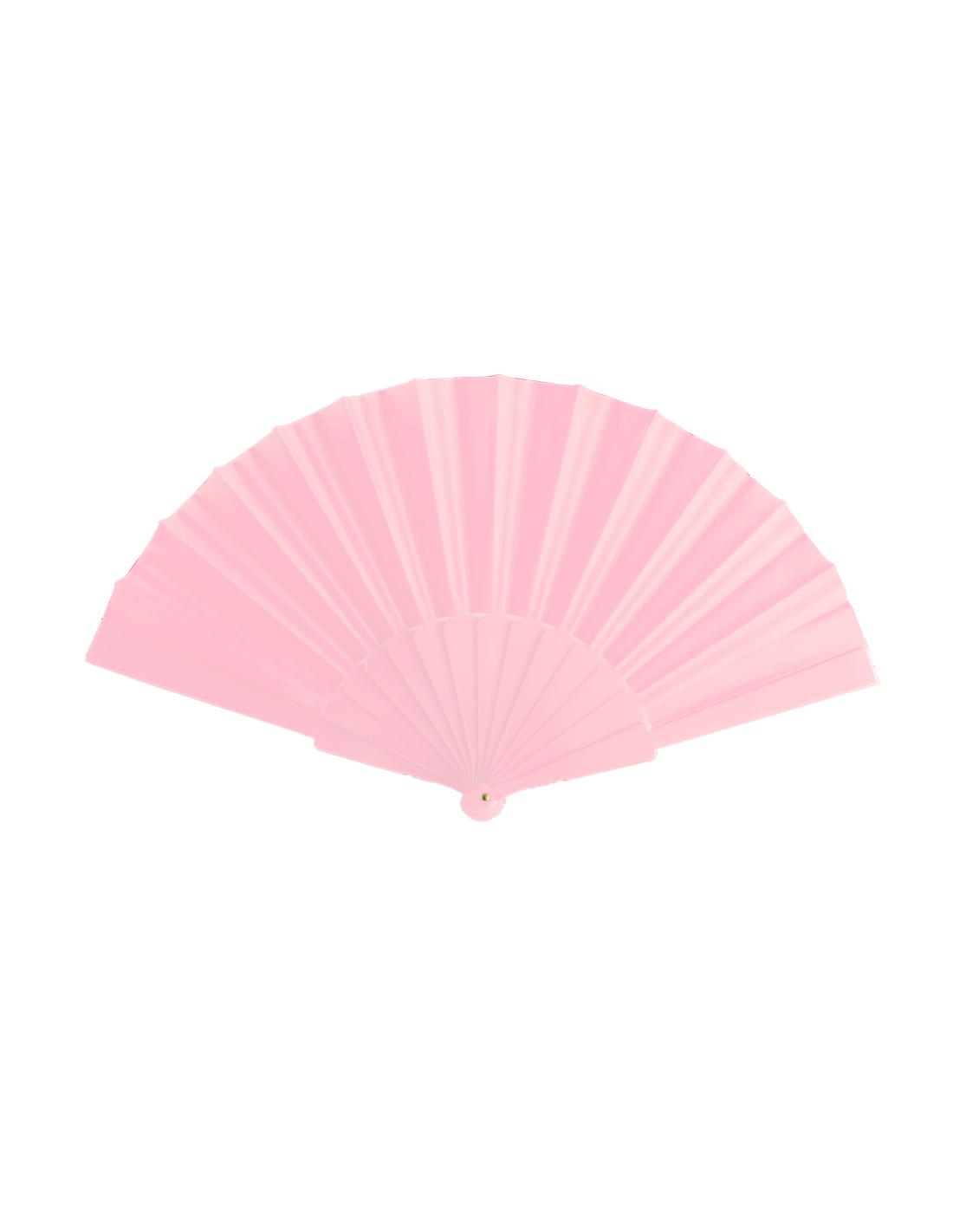Abanico con varillas fabricadas en resistente plástico y tela en poliéster. Varillas y tela a juego, disponible en variada gama de colores. Presentado en caja individual blanca con ventana.