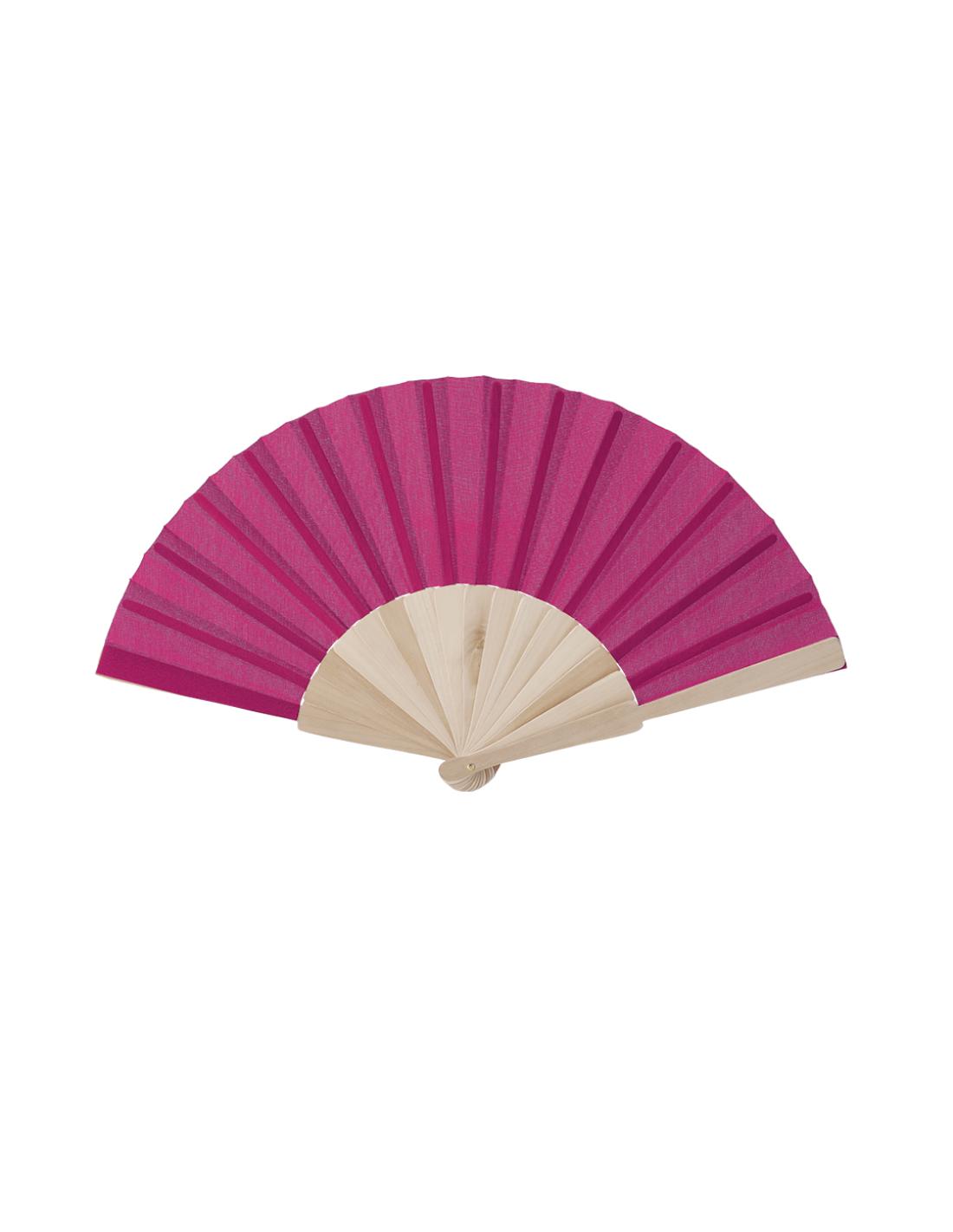 Abanico de línea nature con varillas fabricadas en resistente madera de acabado natural. Tela en resistente poliéster 190T, disponible en variada gama de colores y presentado en una caja de cartón individual blanca.