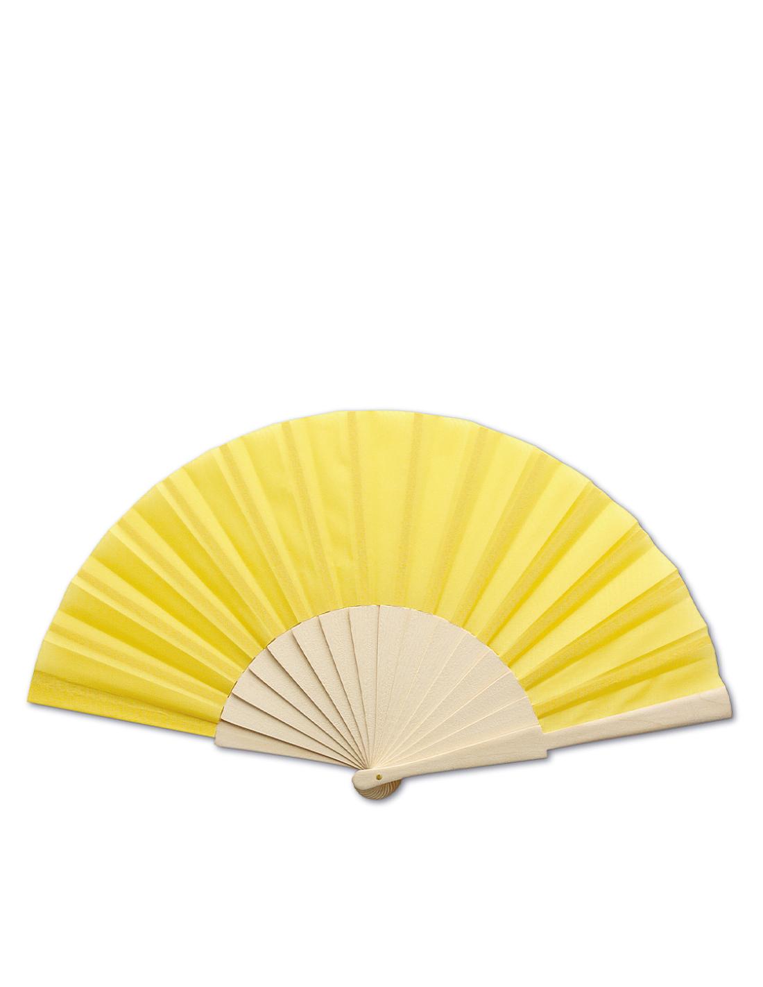 Abanico de línea nature con varillas fabricadas en resistente madera de acabado natural. Tela en resistente poliéster 190T, disponible en variada gama de colores y presentado en una caja de cartón individual blanca.