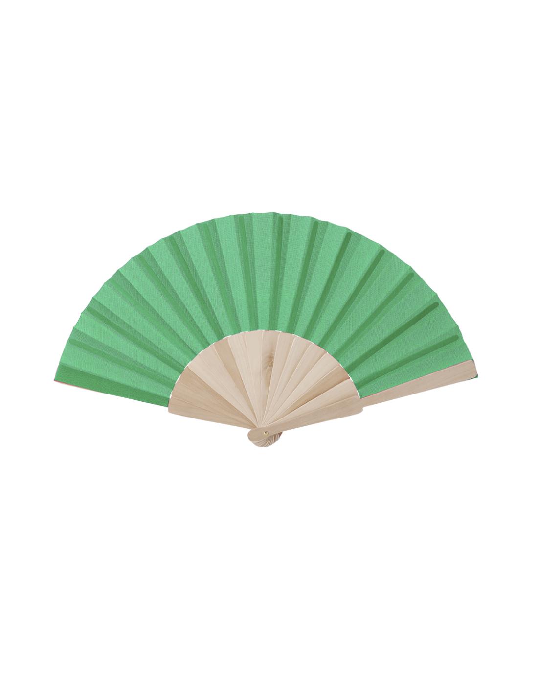 Abanico de línea nature con varillas fabricadas en resistente madera de acabado natural. Tela en resistente poliéster 190T, disponible en variada gama de colores y presentado en una caja de cartón individual blanca.