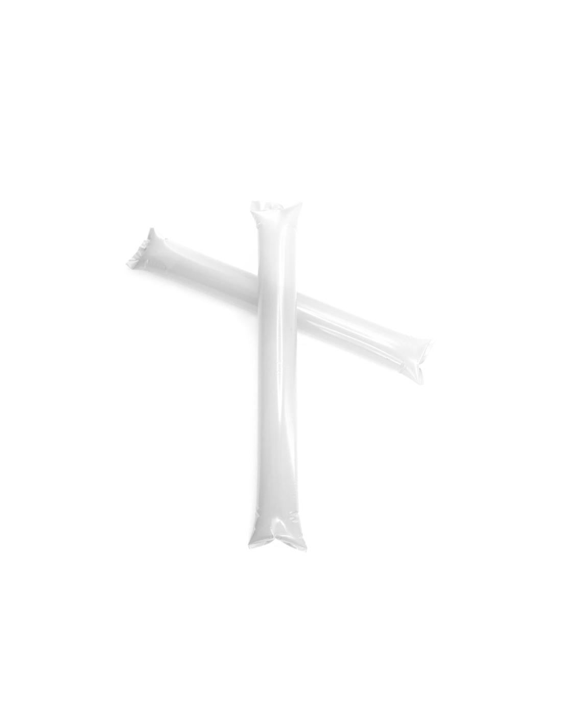 Par de bastom sticks/aplaudidores en resistente y ruidoso material LDPE de vivos colores. Reutilizables y con válvula de inflado incluida.