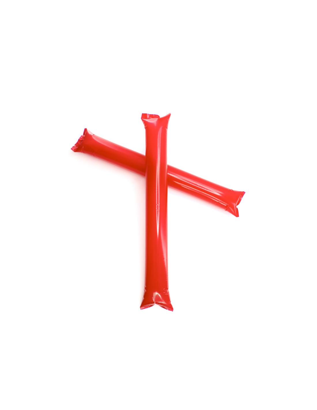 Par de bastom sticks/aplaudidores en resistente y ruidoso material LDPE de vivos colores. Reutilizables y con válvula de inflado incluida.