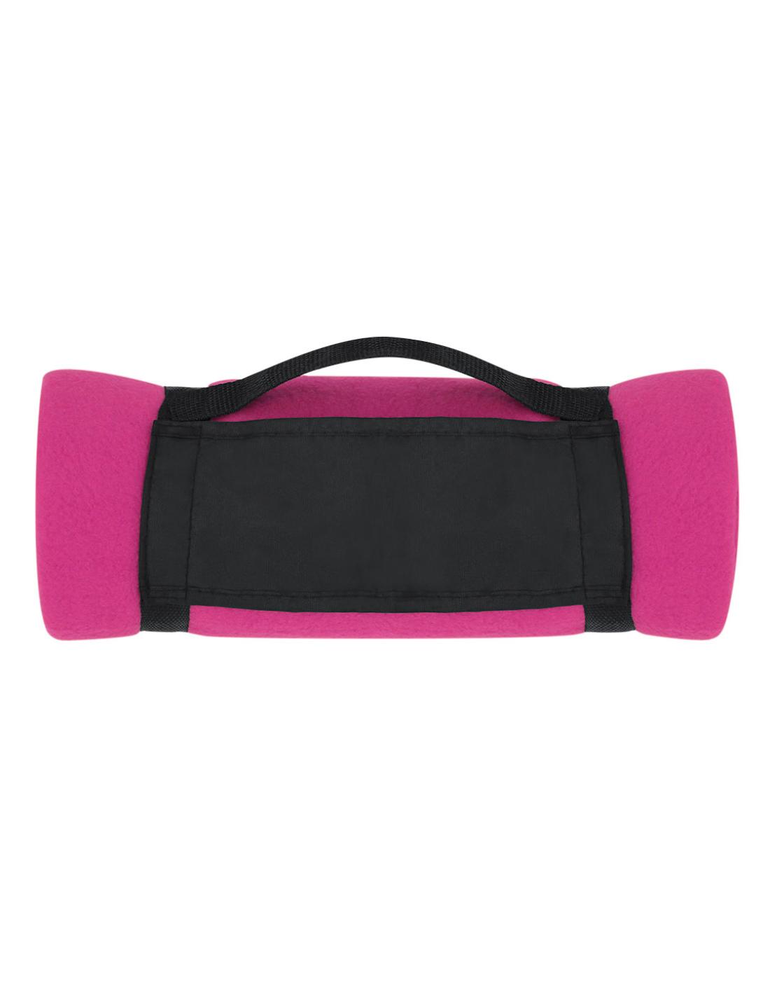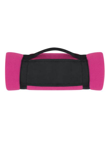 Manta de 130x160cm en variada gama de vivos colores. En material polar fleece anti-pilling de 200g/m2 y con asa de transporte de cierre de velcro en suave poliéster.