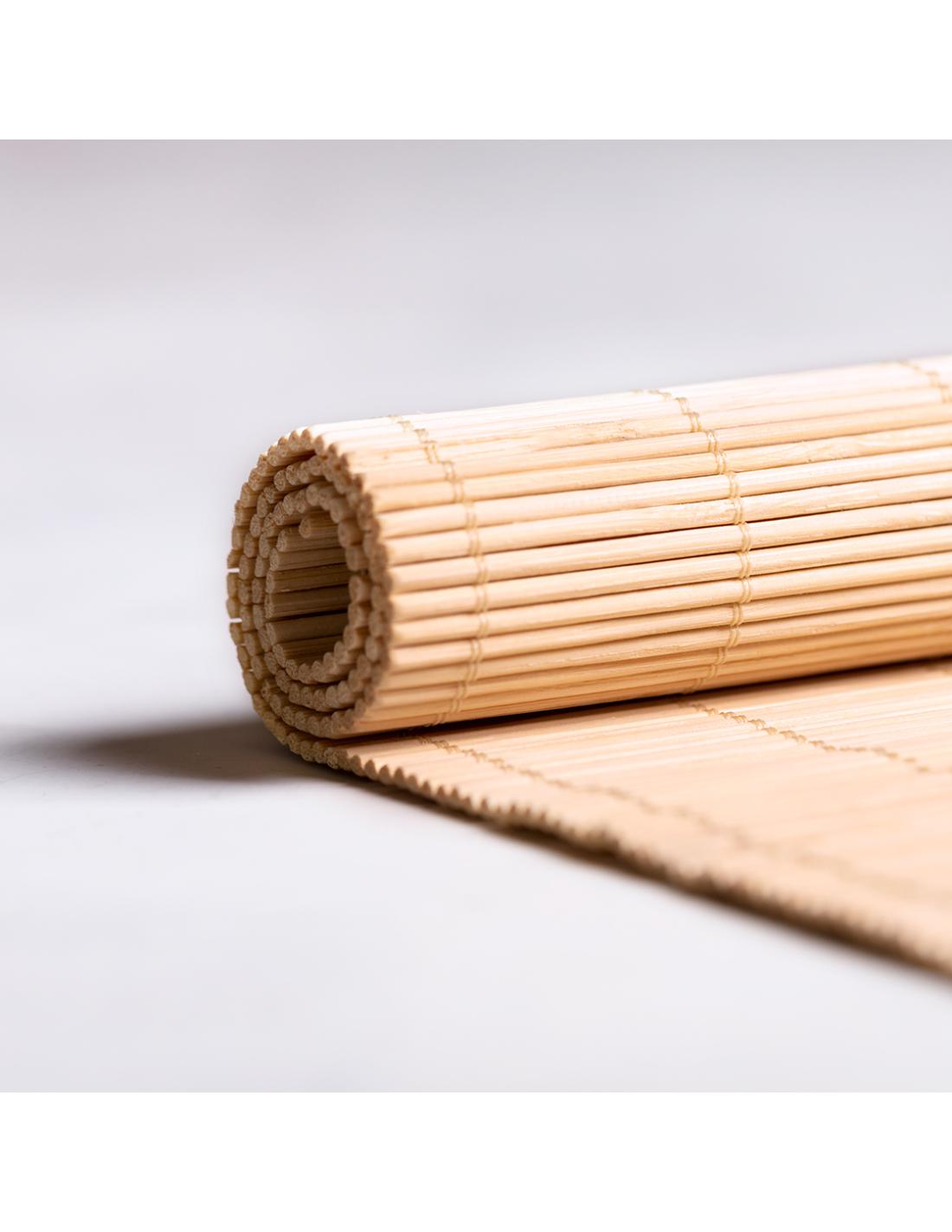 Salvamantel plegable de diseño rectangular en madera de bambú de variados colores. Con refuerzos en resistente hilo.