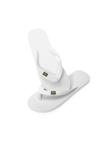 Par de chanclas con suela en resistente EVA y tira de PVC a juego con banderita brasileira. En variada gama de vivos colores y disponibles en tallas 36-38, 42-44.