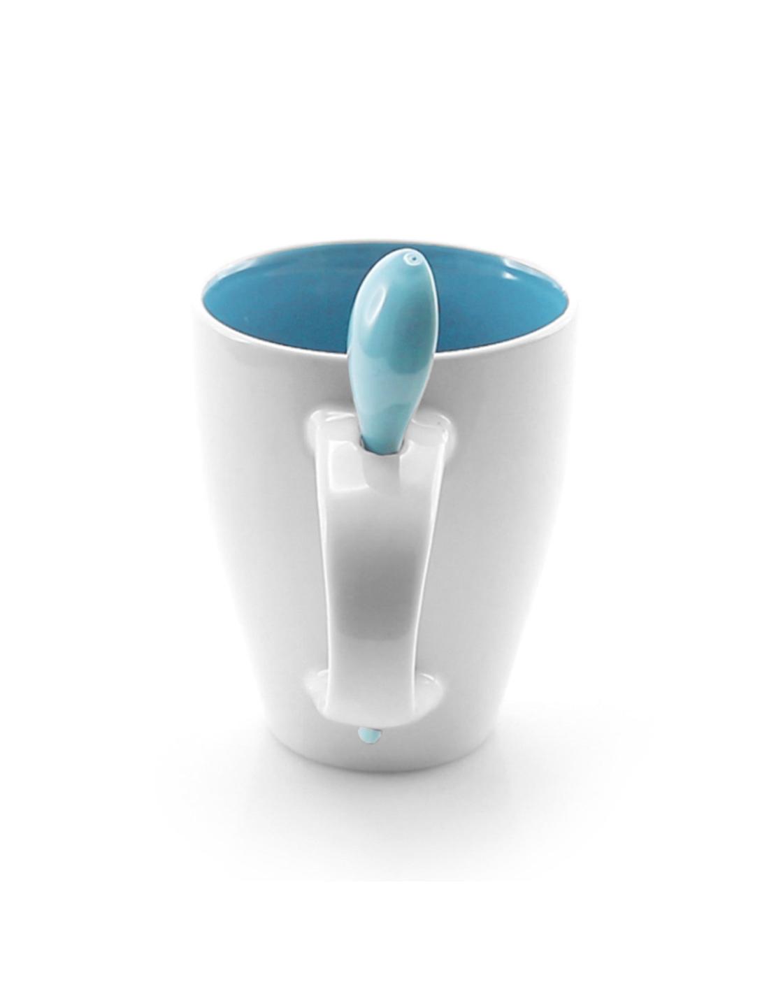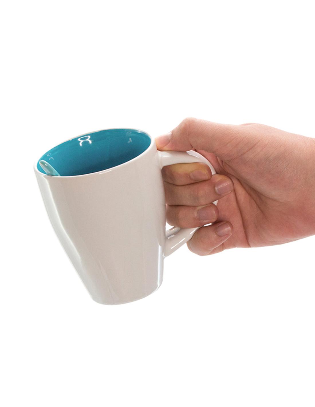 Taza de cerámica de 350ml de capacidad en divertida combinación de exterior en color blanco e interior en gama de vivos colores. Con cuchara de cerámica a juego integrada en asa y presentada en caja individual.Disponible manual de instrucciones en español e inglés.