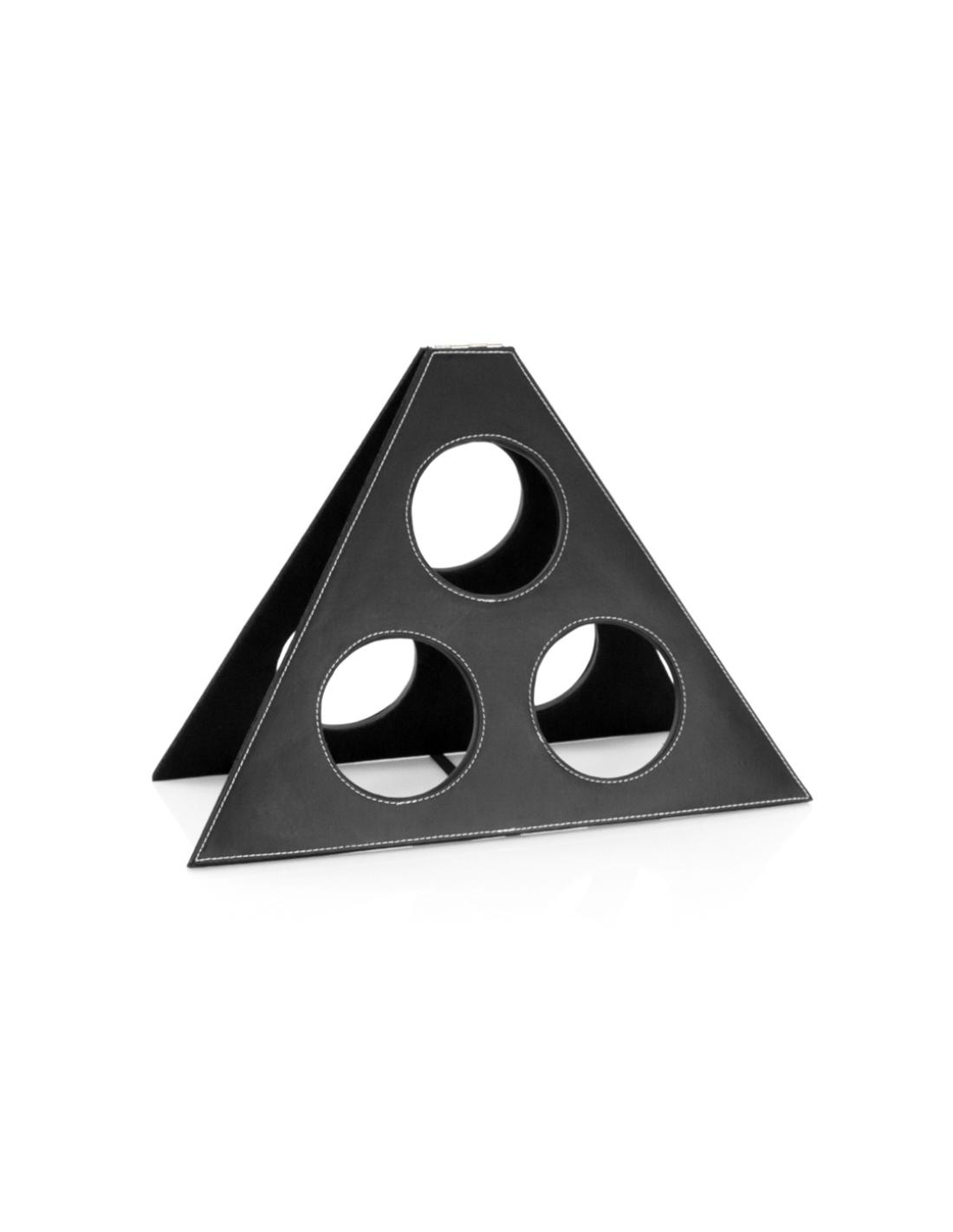 Botellero plegable con capacidad para 3 botellas en elegante polipiel de sobrios colores rosado y tinto. Con pespuntes de refuerzo en color blanco.