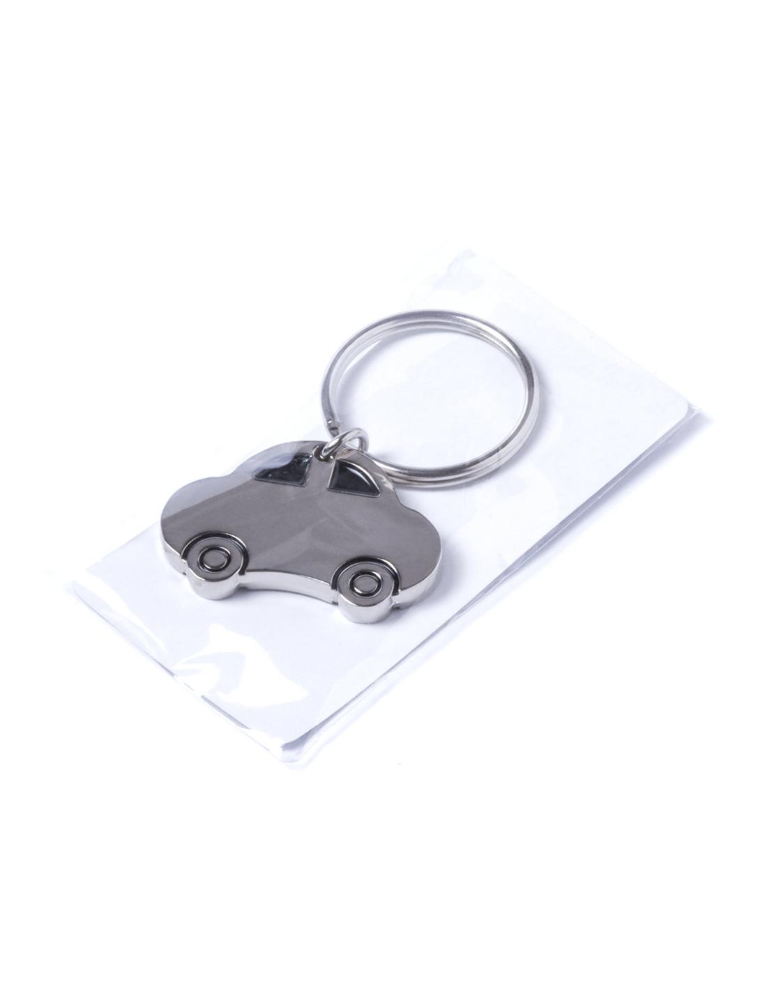 Llavero metálico en divertido diseño de coche especialmente diseñado para marcaje en láser.