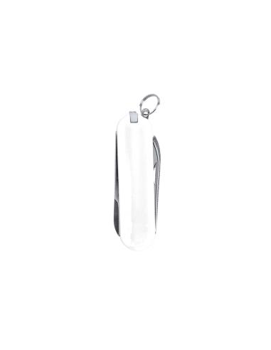 Mininavaja multiusos con accesorios de acero inox, de 6 funciones en variados colores. Incluye navajas, pinzas, lima, palillo, anilla para llavero y tijeras. Presentada en caja individual.