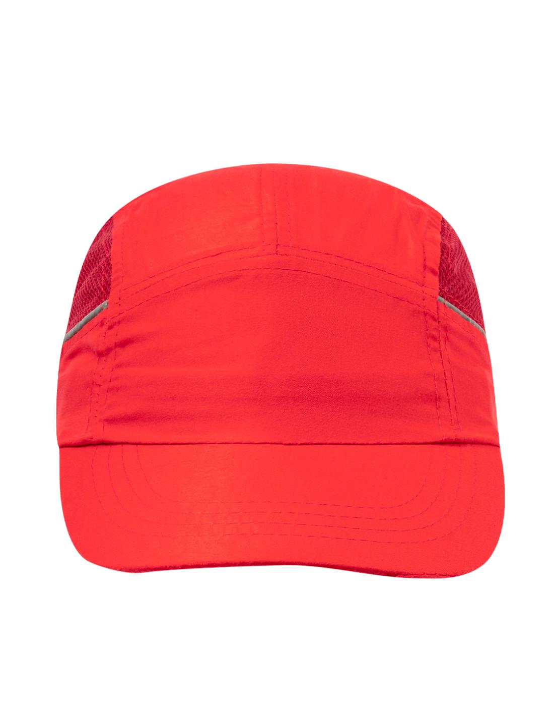 Gorra deportiva fabricada en suave y resistente microfibra. Con redecilla a juego para el sudor en paneles laterales y cierre ajustable de velcro. Con bandas reflectantes en los laterales y disponible en variada gama de colores -color blanco especial para marcaje en sublimación-.