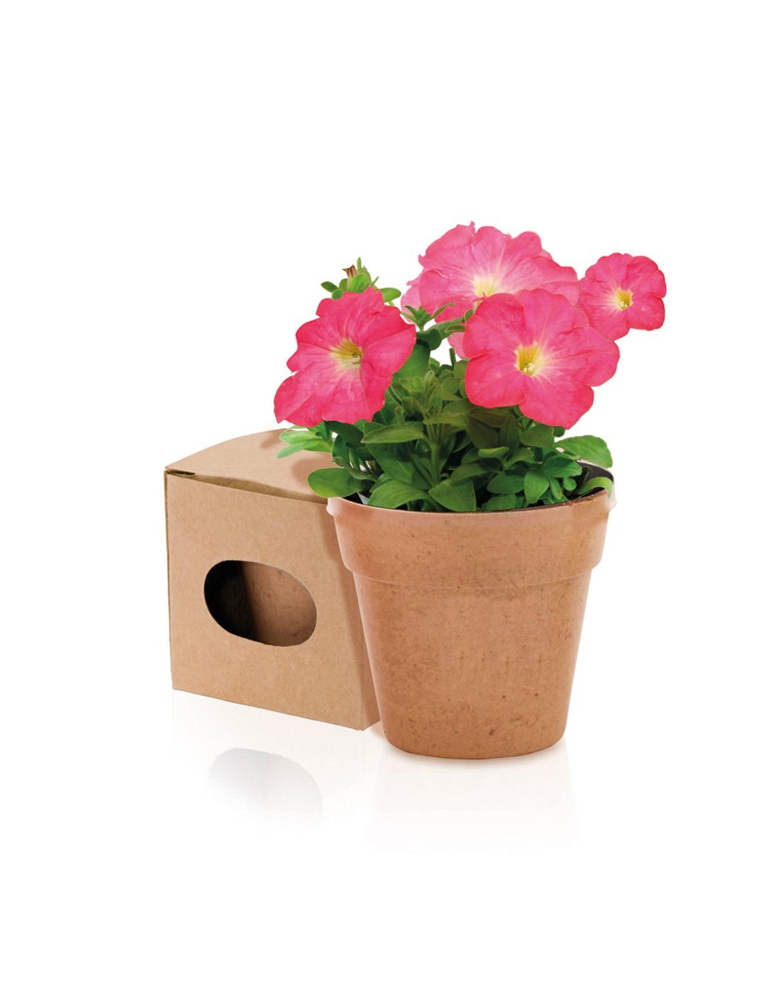 Macetas con semillas de Petunia en macetero de línea nature y en variados colores. Con 5-8 semillas y bolsita de sustrato de crecimiento.