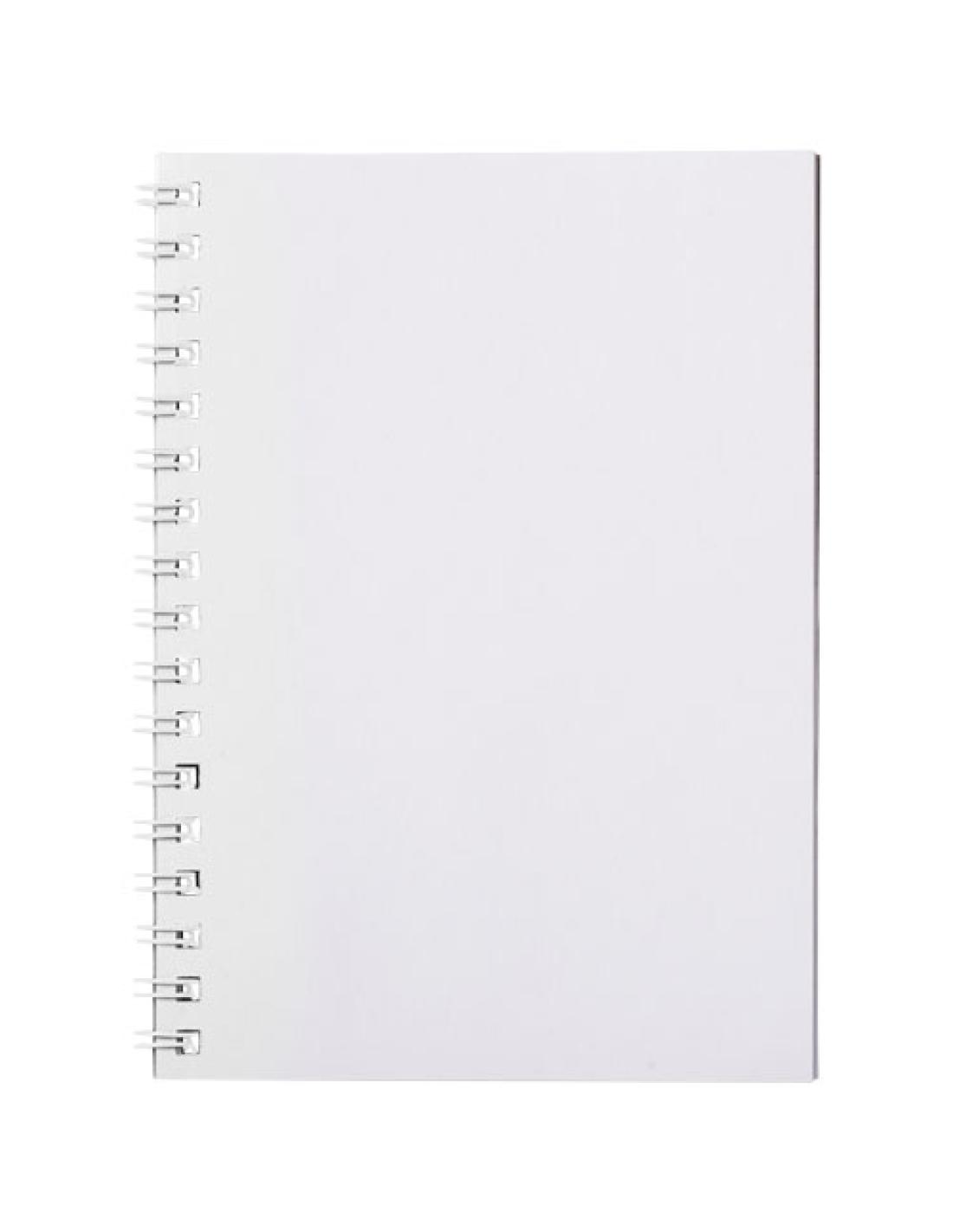 Cuaderno Desk-Mate® A6 con espiral. Incluye 50 hojas en blanco de papel de 80 g/m2, una cubierta frontal de cartulina brillante (250 g/m2) y una cubierta de polipropileno transparente de 450 micras. Espiral blanco o negro. Puede personalizar las páginas de este versátil cuaderno con cualquier diseño, por lo que si desea papel rayado, cuadrados o puntos, ¡todo es posible!