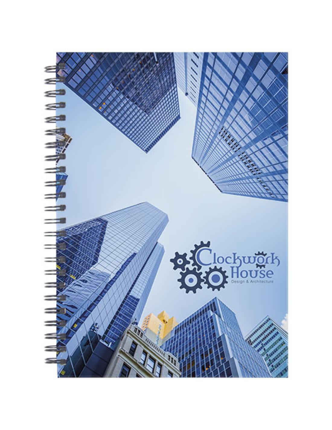 Incluye 80 hojas (80 g/m²) de papel en blanco y un alambre negro o blanco. Disponible en 3 tamaños: A4, A5 y A6. Decoración a todo color disponible en la tapa y en cada hoja, por el anverso y el reverso.