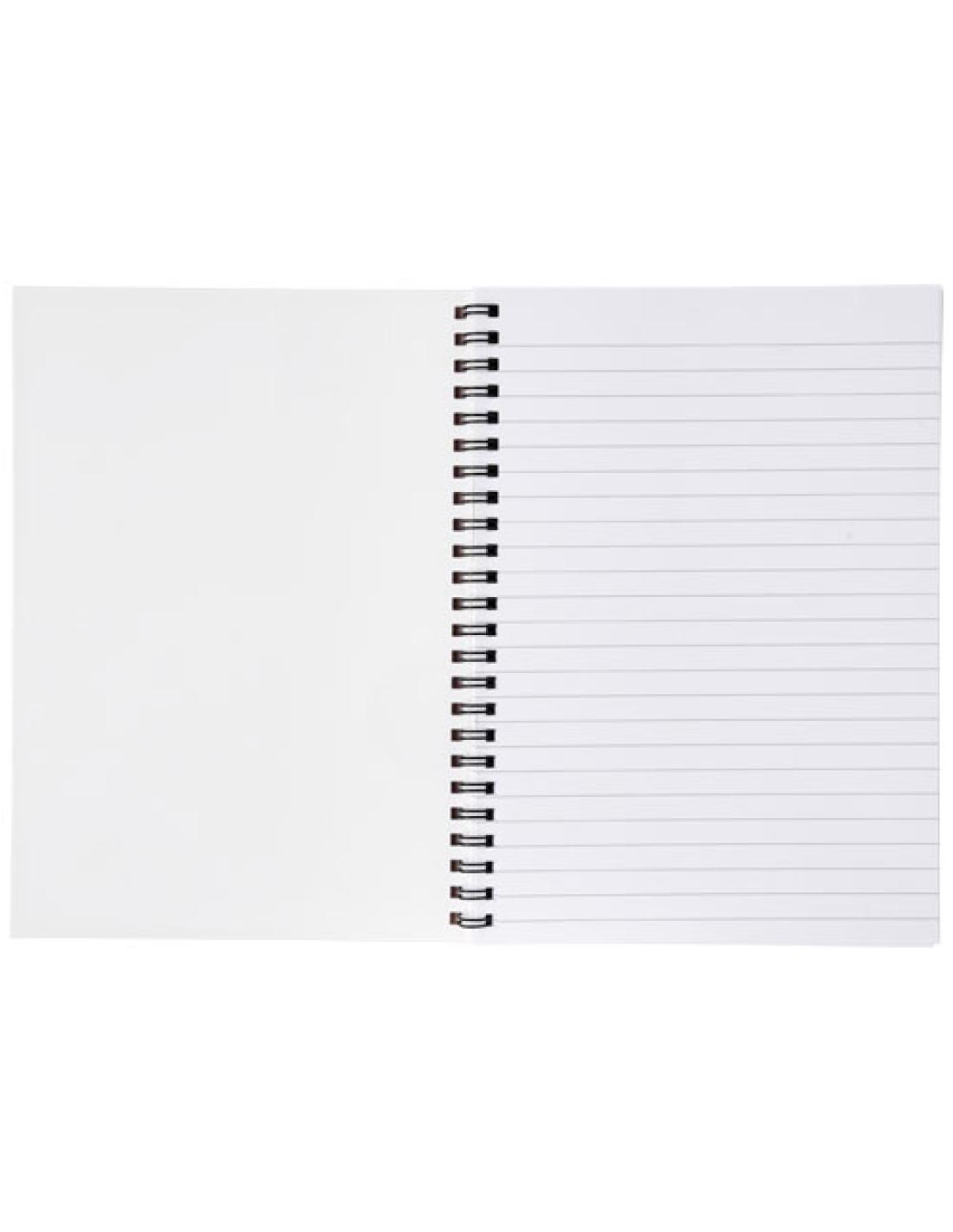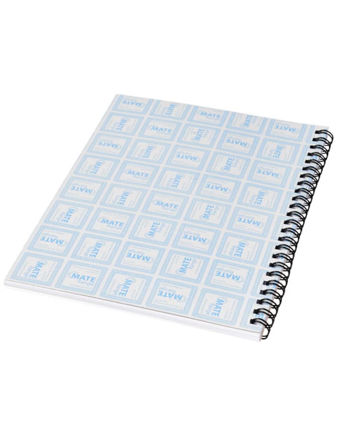 Cuaderno espiral Desk-Mate® A5. Incluye 50 hojas de papel en blanco (80 g/m2) y cubierta frontal (450 g/m2). La cubierta es resistente al desgarro y al agua. Color blanco o negro. Puede personalizar las páginas de este versátil cuaderno con cualquier diseño, por lo que si desea papel rayado, cuadrados o puntos, ¡todo es posible!