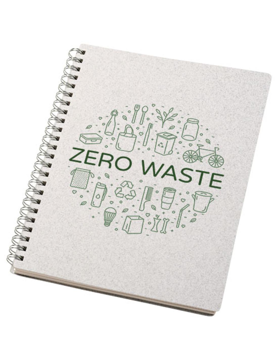 Libreta A5 con espiral fabricada con materiales de origen responsable que contienen residuos de algodón (15%) y residuos reciclados postconsumo (40%) en las cubiertas. Incluye 80 hojas de papel 100% reciclado de origen responsable de 80 g/m2 con una cuadrícula punteada. El diseño punteado combina las ventajas de las páginas rayadas, lisas y cuadriculadas, proporcionando estructura y estimulando la creatividad al mismo tiempo, lo que hace que este cuaderno sea adecuado para una amplia gama de usuarios. Gracias a la espiral, el cuaderno puede quedar plano para mayor comodidad y se puede plegar fácilmente. Fabricado en Italia.