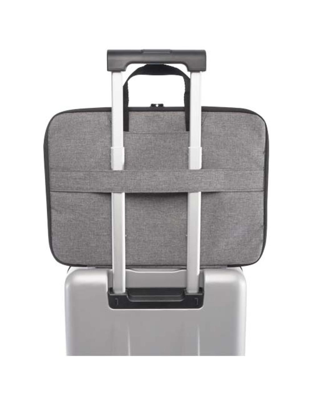 El maletín 2 en 1 para portátil de 14" "Libra" es perfecto para los desplazamientos diarios o los viajes gracias a sus funcionalidades y diseño bien pensados. Está fabricado con poliéster reciclado con certificado GRS y forro de RPET, y tiene un compartimento principal con cremallera que puede abrirse 180 grados para facilitar los controles de seguridad. El maletín también cuenta con una funda de neopreno de calidad para prooteger el portátil en un lado, dos bolsillos de malla en el otro, un bolsillo frontal con cremallera y una correa para trolley en la parte posterior. Además, dispone de dos bolsillos abiertos para almacenamiento adicional en los que también se pueden meter con facilidad las asas de correa, con lo que se convierte en una funda para portátil.