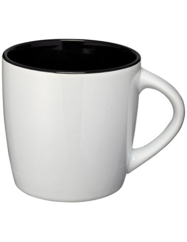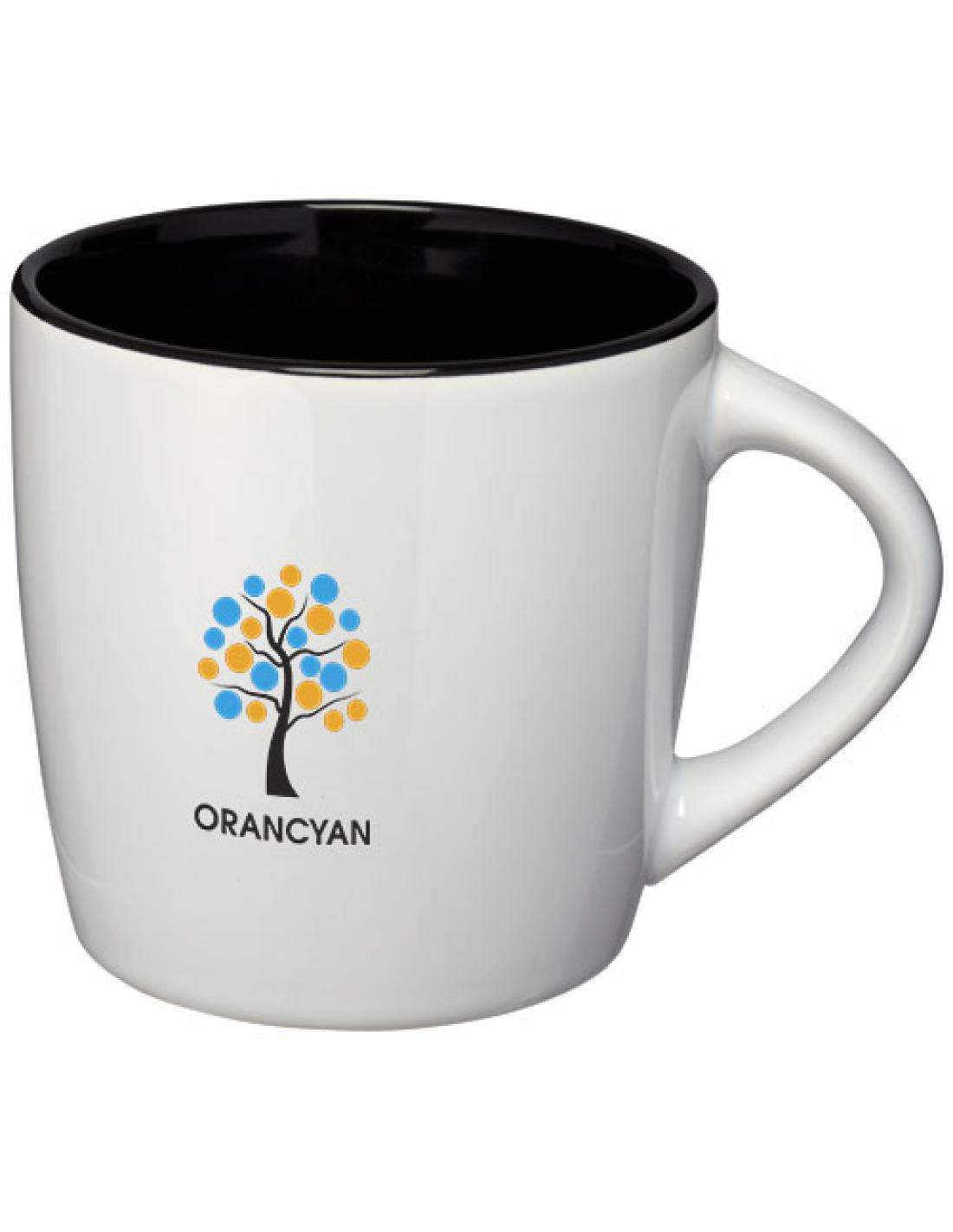 Tomar café en una taza de bonito diseño siempre sabe mejor. ¿Por qué no elegir la taza de cerámica Azteca? El exterior brillante ofrece suficiente espacio para añadir un logotipo o un mensaje, y el contraste de color en el interior hace que la taza de 340 ml destaque aún más. La taza Aztec (incluida la impresión) es apta para el lavavajillas según la norma EN12875-1 durante al menos 125 lavados.