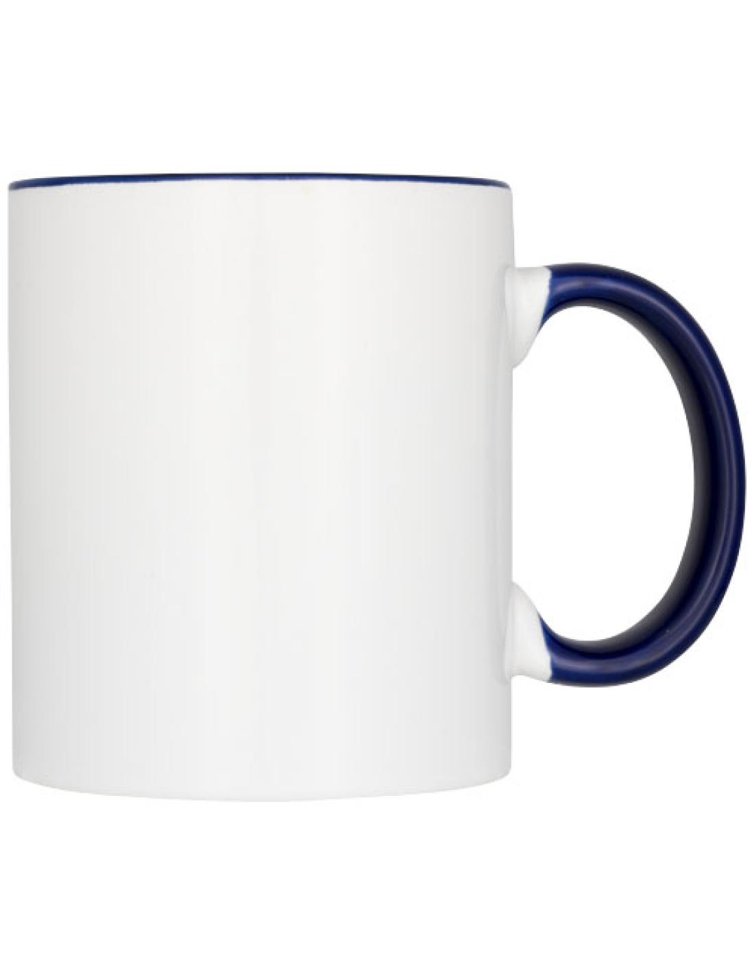 Esta taza de cerámica de diseño clásico tiene una capa especial para la sublimación. La taza tiene el interior de color y el asa a juego. Apto para lavavajillas de acuerdo con EN12875-1 (al menos 125 ciclos de lavado) para todos los métodos de marcaje. Capacidad de 330ml. Se presenta en una caja de cartón blanco.