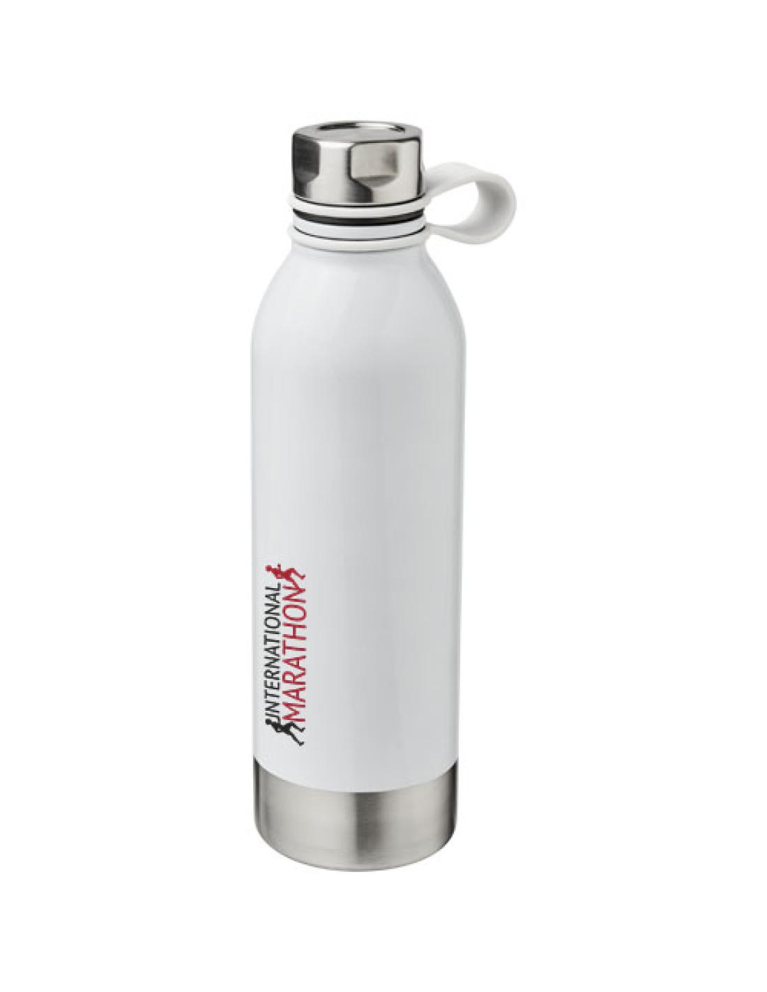 El bidón deportivo de acero inoxidable Perth de 740 ml no sólo es un regalo para la vista en cualquier escritorio, sino que también es ideal para utilizarla durante un paseo por el bosque. El tapón de rosca y la tapa de acero inoxidable con una cómoda asa de manipulación de silicona hacen que el bidón sea fácil de transportar. Además, el tapón nunca se pierde. La combinación de colores blanco y plateado le da un aspecto elegante.