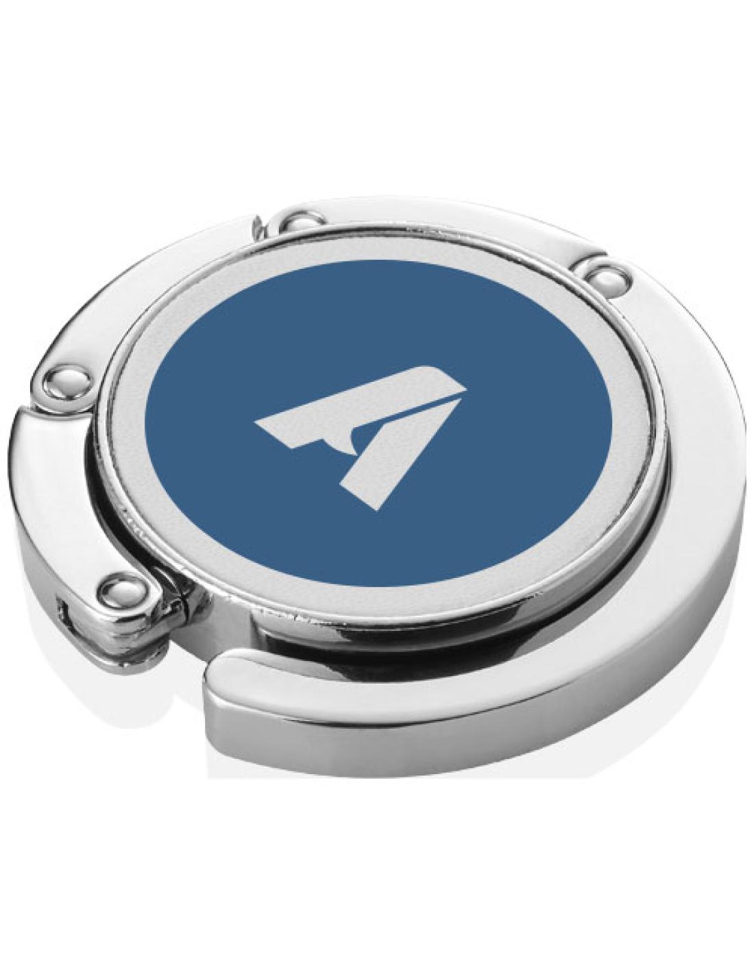 Cuelgabolsos plegable que mantiene tu bolso limpio y seguro. El colgador puede sujetarse al borde de una superficie y puede soportar hasta 4,5 kg.