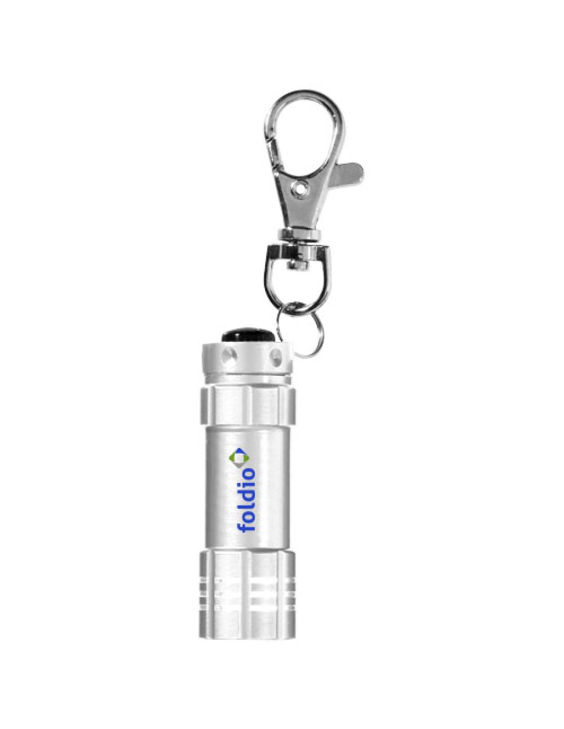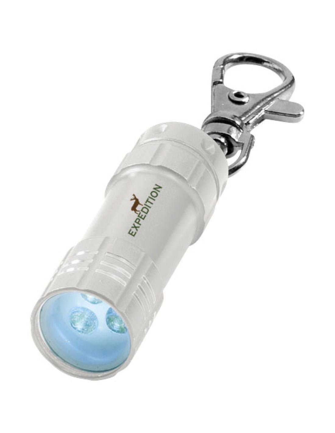 Llavero linterna de 3 LED blancos con mosquetón. Pilas incluidas.