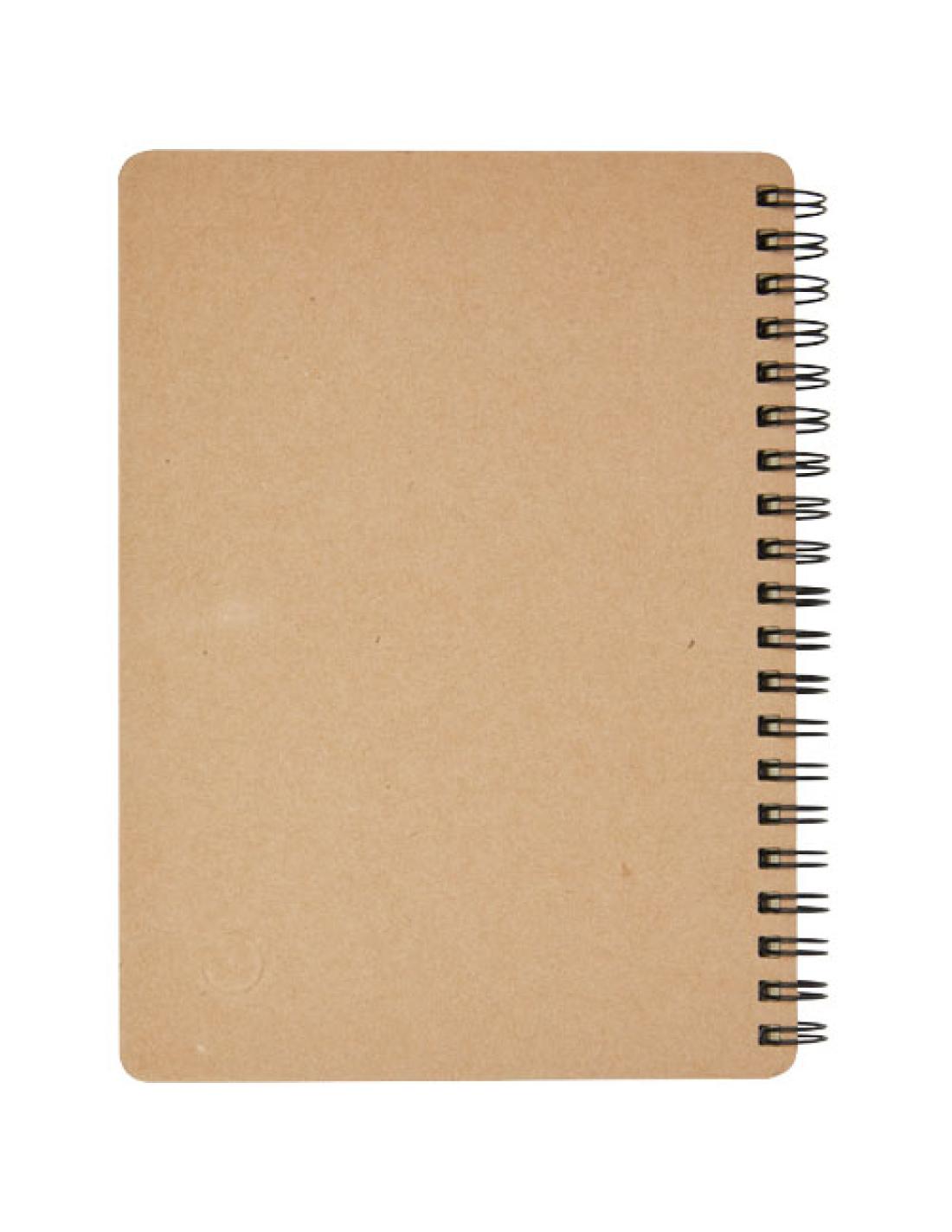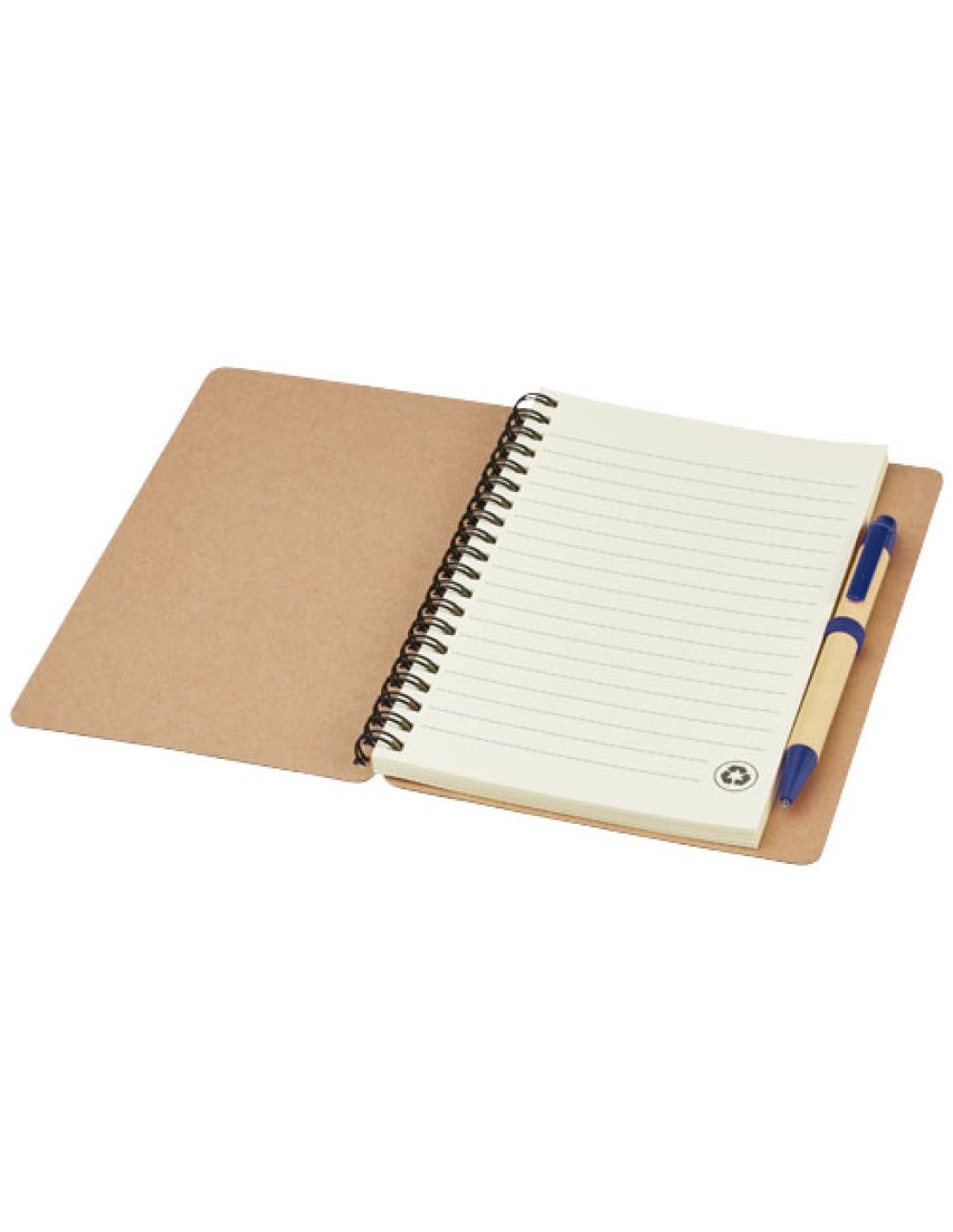 Cuaderno con cubierta de papel reciclado con 60 hojas de papel reciclado tamaño de referencia A6 rayado y un bolígrafo a juego. El cuaderno y el bolígrafo se empaquetan juntos.