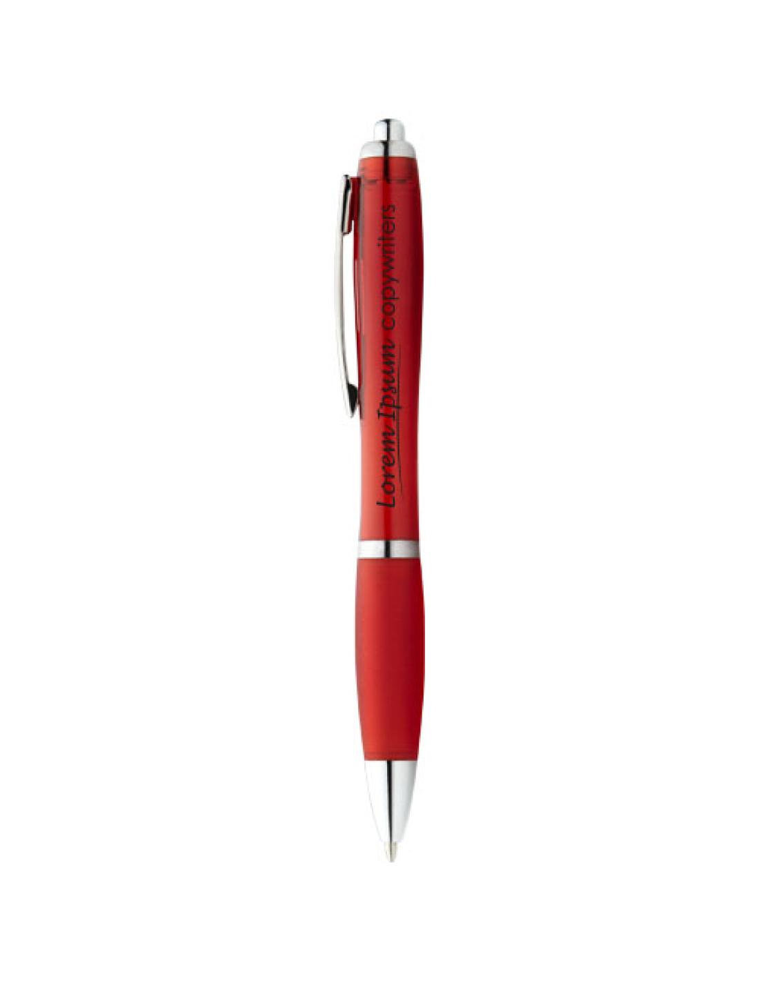 Escribir es algo que la gente hace a diario. Por eso es esencial tener un bolígrafo fiable para ello. El bolígrafo Nash, con un elegante diseño curvilíneo, es uno de esos bolígrafos. El bolígrafo está fabricado con material plástico ABS, que es duro y sólido, por lo que ofrece una larga vida útil. Gracias al rápido mecanismo de clic, el bolígrafo es rápido de usar y tiene un agarre suave, que reduce cualquier tensión en la superficie de escritura. El bolígrafo Nash está disponible en diferentes colores y ofrece múltiples posibilidades de aplicación del logotipo.