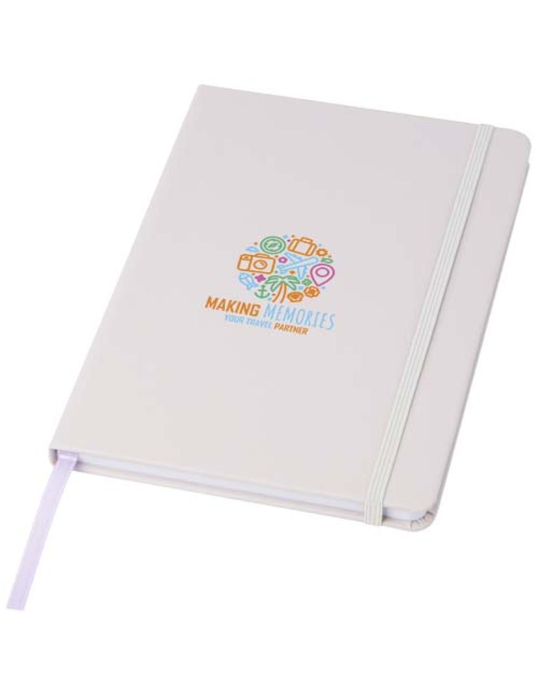 El cuaderno Spectrum no sólo es un elemento esencial para la oficina, sino también una gran oportunidad para promocionar tu marca. El cuaderno de cartón tiene una cubierta de tacto suave y 96 hojas rayadas de 60 g/m², ideales para anotar ideas rápidas o notas largas. El tamaño A5 es práctico, ya que cabe fácilmente en un bolso medio.