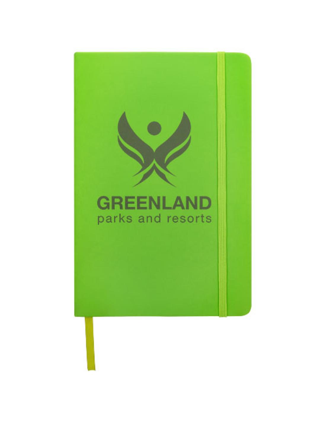 El cuaderno Spectrum no sólo es un elemento esencial para la oficina, sino también una gran oportunidad para promocionar tu marca. El cuaderno de cartón tiene una cubierta de tacto suave y 96 hojas rayadas de 60 g/m², ideales para anotar ideas rápidas o notas largas. El tamaño A5 es práctico, ya que cabe fácilmente en un bolso medio.