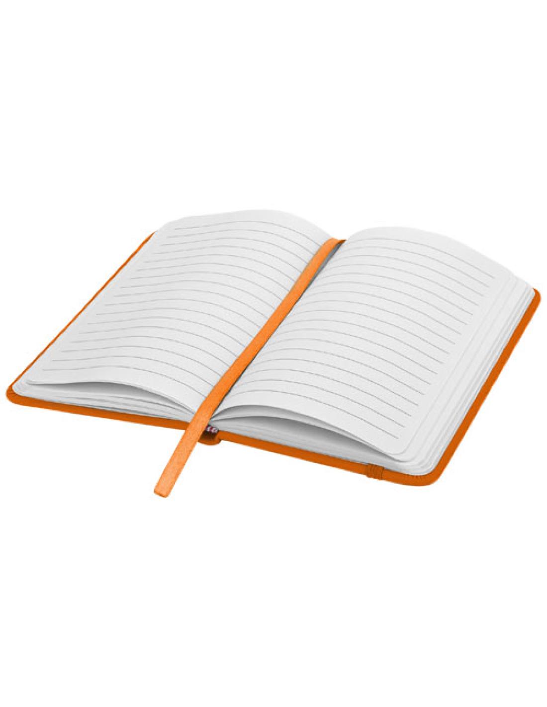 Además de ser un elemento esencial para la oficina, el cuaderno Spectrum es también un artículo estupendo para promocionar cualquier marca. El cuaderno de tapa dura es de cartón recubierto con una cubierta de PVC de tacto suave. Las 96 hojas rayadas de 60 g/m² son ideales para anotar ideas rápidas o notas largas. El tamaño de referencia A6 es práctico, ya que cabe sin problemas en el bolso medio y es fácil de sujetar. La cinta del marcapáginas y el cierre elástico son del mismo color.
