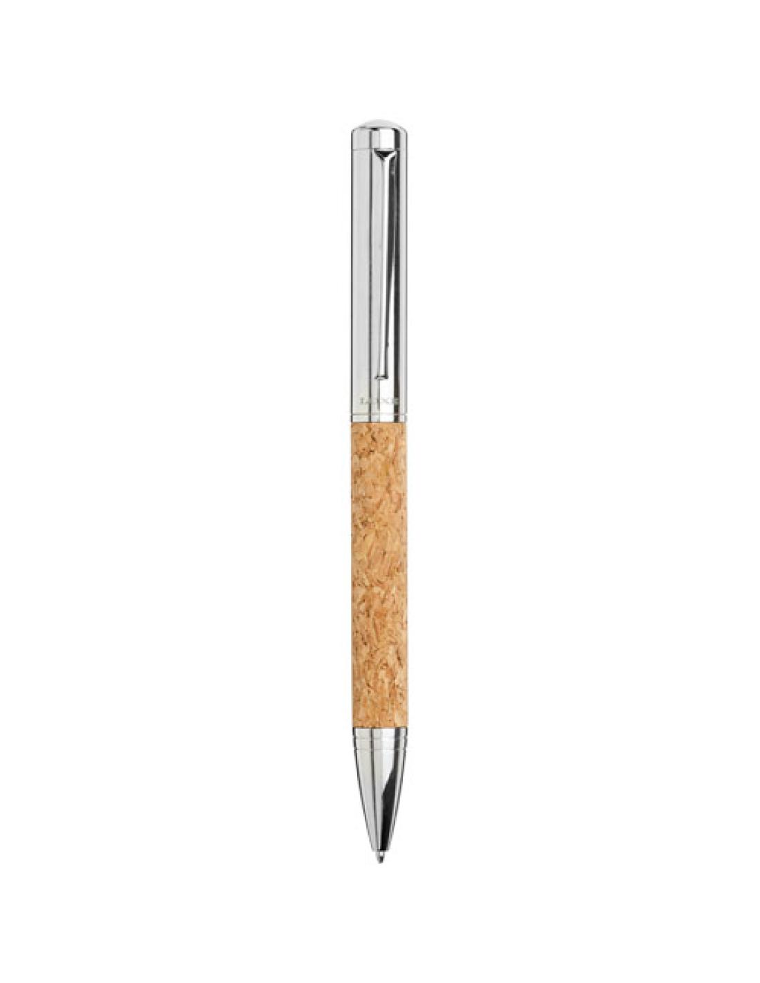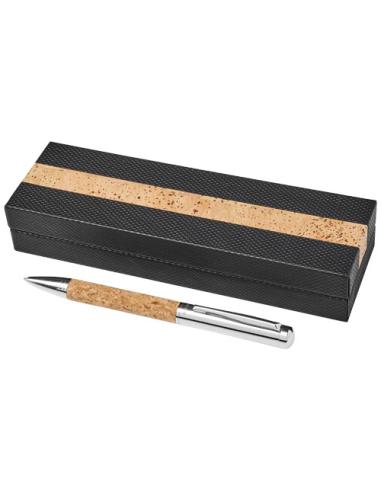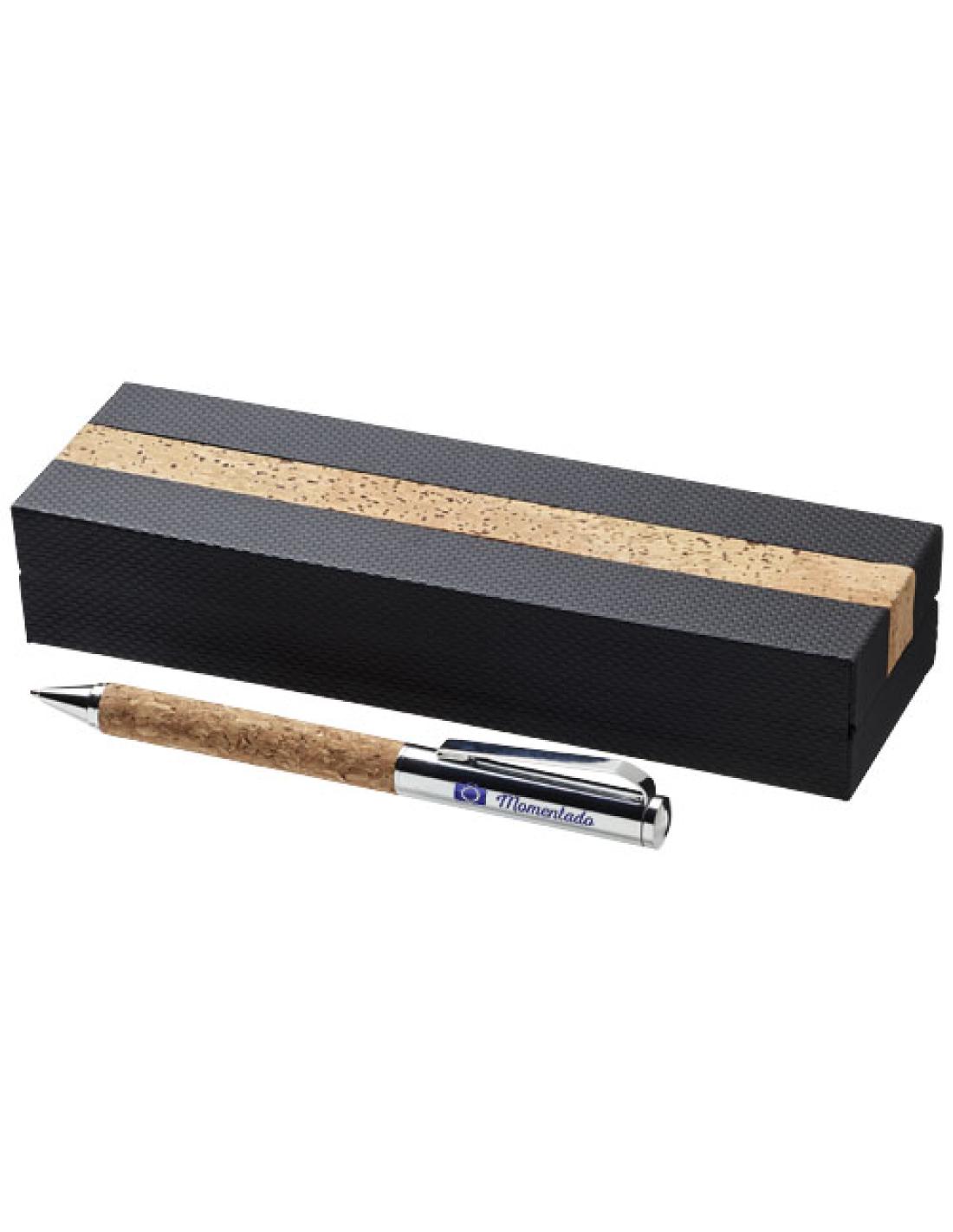 Un bolígrafo con mecanismo de giro y detalles de corcho. Se presenta en un estuche de regalo de ''Luxe''.
