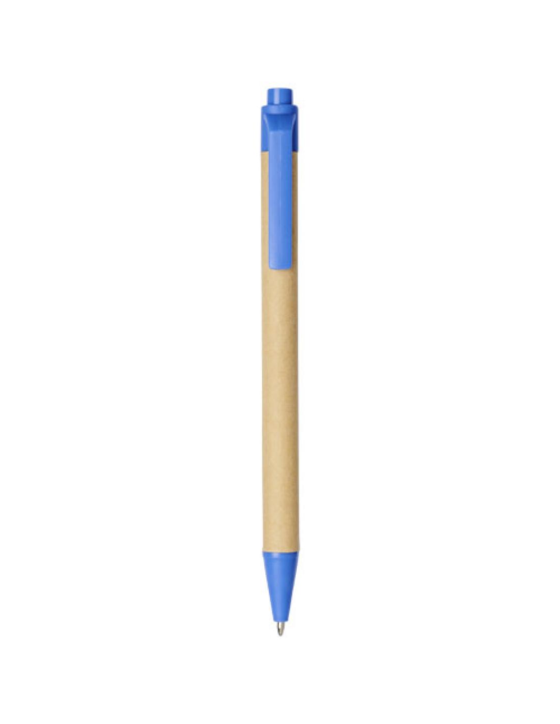 Bolígrafo ecológico con mecanismo de clic, cuerpo fabricado con papel biodegradable y detalles de plástico de maíz en varios colores. El color del cartón reciclado puede variar.