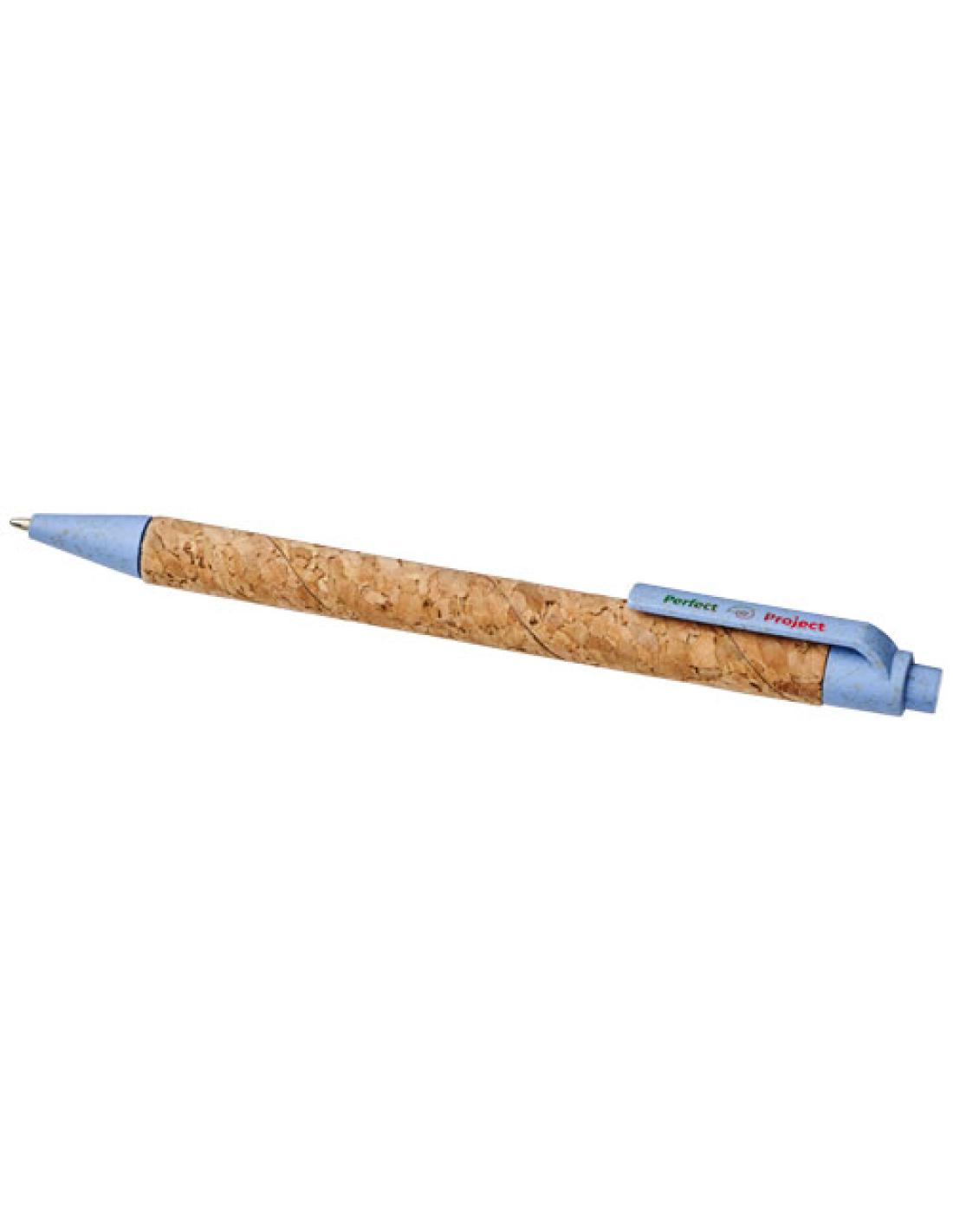 Bolígrafo ecológico con mecanismo de clic, cuerpo de corcho y detalles de paja de trigo en varios colores. La paja de trigo es el tallo que queda después de cosechar los granos de trigo. Esto reduce la cantidad de plástico utilizado, por lo que proporciona una alternativa ecológica. El color del corcho puede variar.