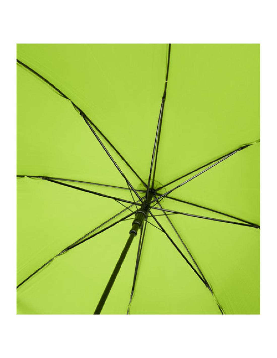 Paraguas de apertura automática con capa externa de poliéster de tafetán de tereftalato de polietileno reciclado. Eje metálico robusto y estructura de alta calidad con varillas de fibra de vidrio que ofrece flexibilidad en condiciones de viento. Se trata de una opción más sostenible gracias al mango de madera, las puntas de las varillas y la capa externa de poliéster de tafetán de tereftalato de polietileno reciclado. Disponible en una amplia variedad de colores contemporáneos con una gran zona de decoración en cada uno de los paneles.