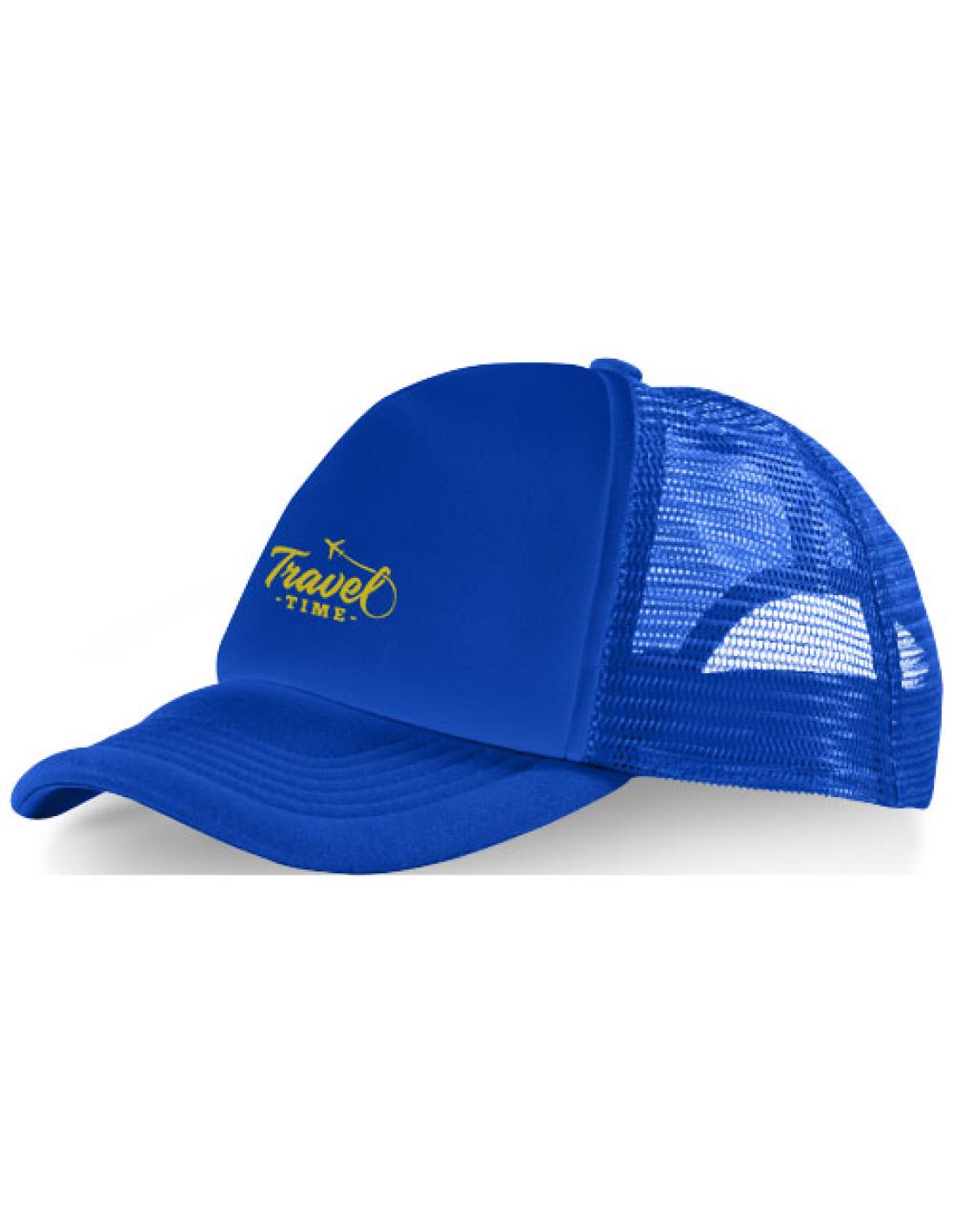 La gorra Trucker de 5 paneles es una gorra clásica de camionero con foam de punto de poliéster de 100 g/m² en la parte delantera, y malla de poliéster transpirable en la trasera. Esta gorra incorpora un práctico cierre de plástico para un ajuste seguro para una circunferencia de cabeza de 58 cms