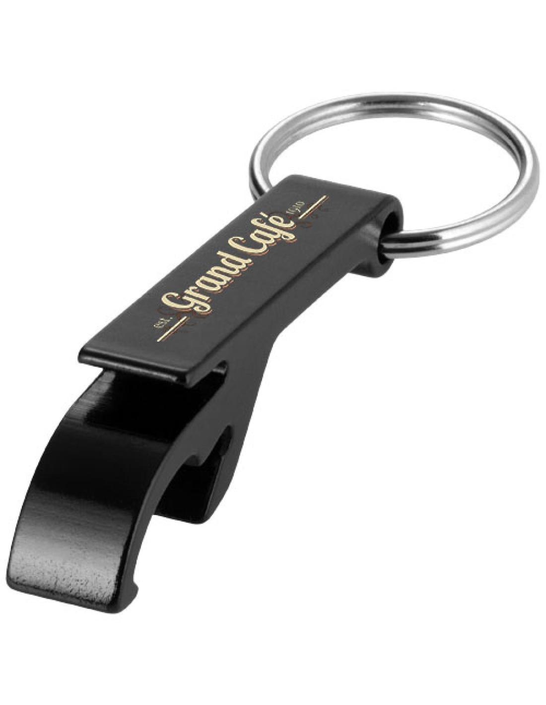 Para poder abrir una botella o una lata en cualquier momento y en cualquier lugar, y al mismo tiempo promocionar una marca de forma sofisticada, el llavero abrebotellas y latas Tao es el accesorio perfecto. El llavero está fabricado en aluminio, por lo que es resistente y ligero. En combinación con el acabado metálico, un logotipo impreso en el llavero hace que destaque aún más.