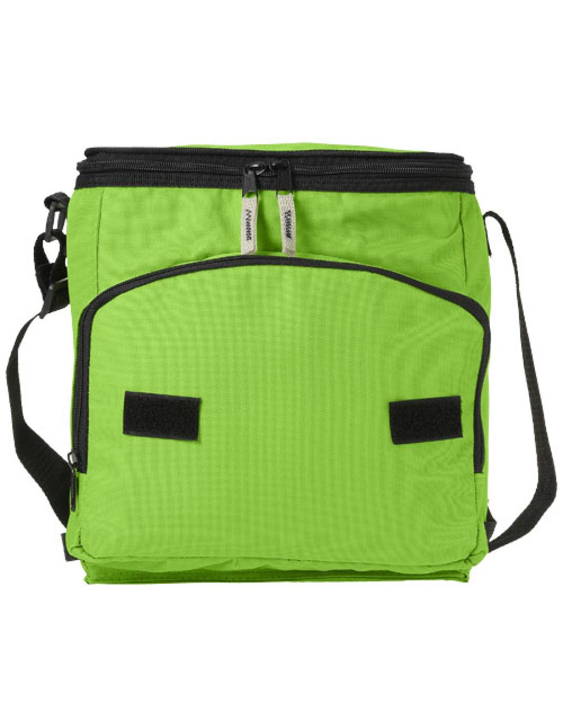 Bolsa isotérmica plegable con cremallera tanto en el compartimento principal como en el bolsillo frontal. Hombrera ajustable. La bolsa isotérmica se puede plegar en dos gracias al velcro del bolsillo frontal. Accesorios no incluidos.