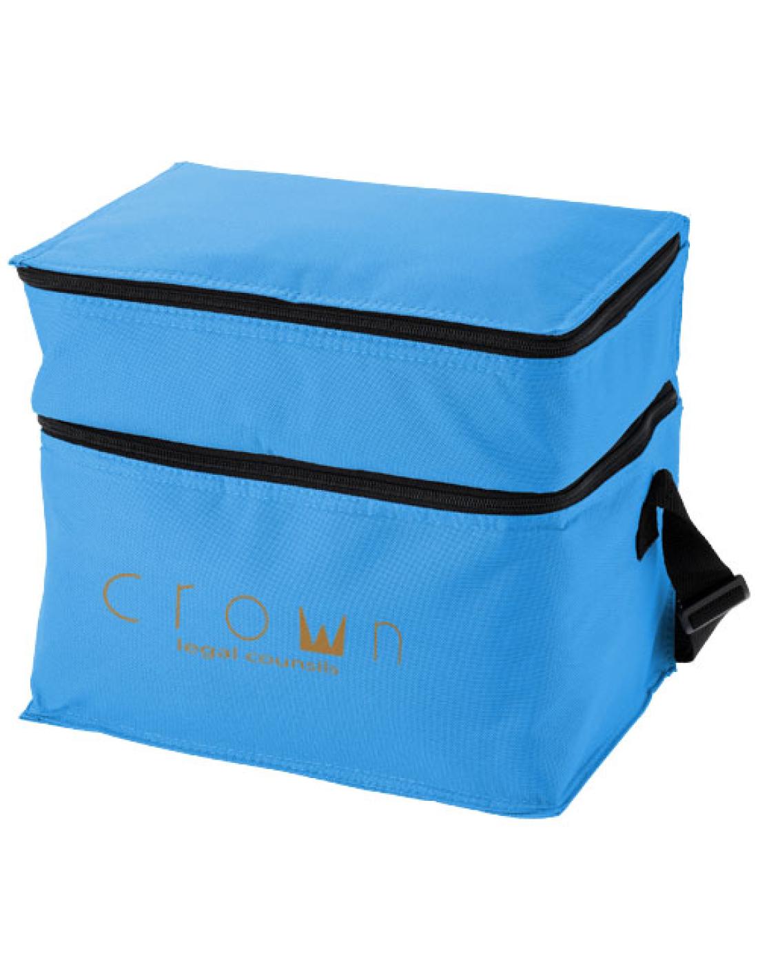 Con la bolsa nevera Oslo podrá tener bebidas y aperitivos refrigerados en cualquier momento y lugar. La bolsa nevera tiene dos compartimentos separados con cremallera. La parte superior es perfecta para guardar pequeños tentempiés, y la parte inferior es ideal para alimentos más grandes. La correa para el hombro es ajustable, por lo que la bolsa es fácil de llevar por todos. La bolsa nevera está fabricada con 600D de poliéster, un tejido resistente y duradero.