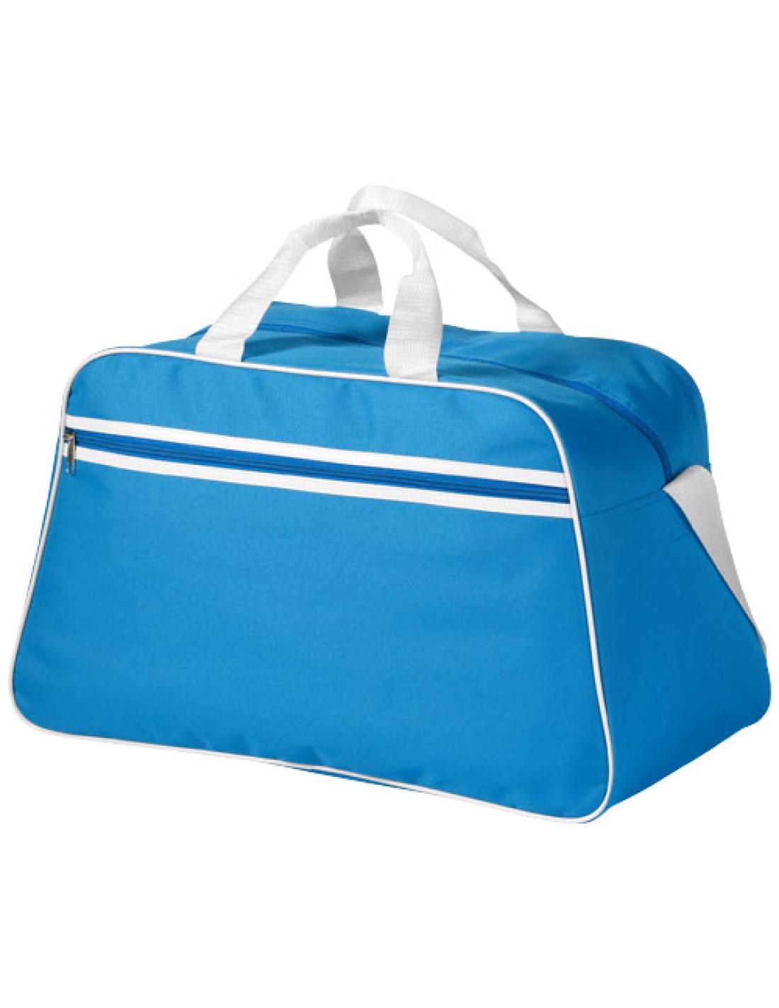 Bolsa de deporte con compartimento principal con cremallera y bolsillo frontal con cierre de cremallera.