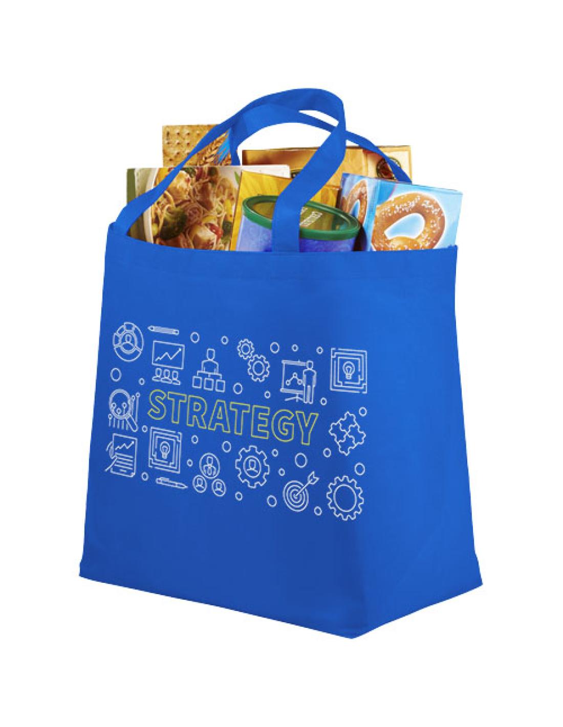 La bolsa Tote Maryville es una buena alternativa a la bolsa de plástico de un solo uso. Deja suficiente espacio para imprimir logotipos o textos, y el tejido no tejido hace que la Tote bag sea sólida para una amplia gama de usos. Las asas son de 18 cms, lo que significa que la bolsa puede llevarse fácilmente en la mano o al hombro. Además, el amplio compartimento principal facilita el almacenamiento de varios artículos. En resumen: la bolsa ideal para ir de compras o para un día de playa o parque. Resistencia hasta 10 kg de peso.