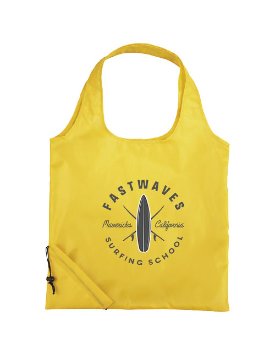 Ya sea para regalar en un festival o para llevar al supermercado, la bolsa Tote Bungalow es una buena opción para guardar objetos ligeros. La bolsa ofrece mucho espacio para añadir logotipos pequeños o grandes y es fácil de llevar en la mano o al hombro. La función única de plegado que se recoge en la esquina con cierre de cordón hace que la bolsa sea fácil de guardar. Resistencia hasta 5 kg de peso.